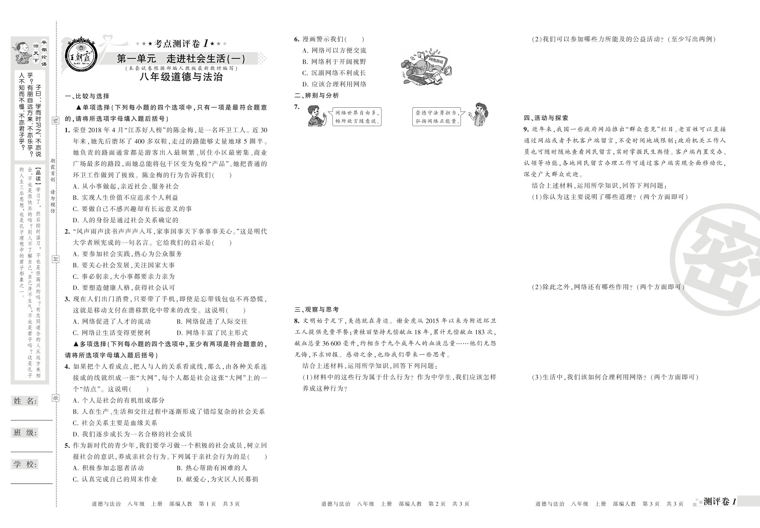王朝霞期末测评卷——第一单元 走进社会生活(一)(二)八年级上册道德与法治(人教版)_R210812152217【0】