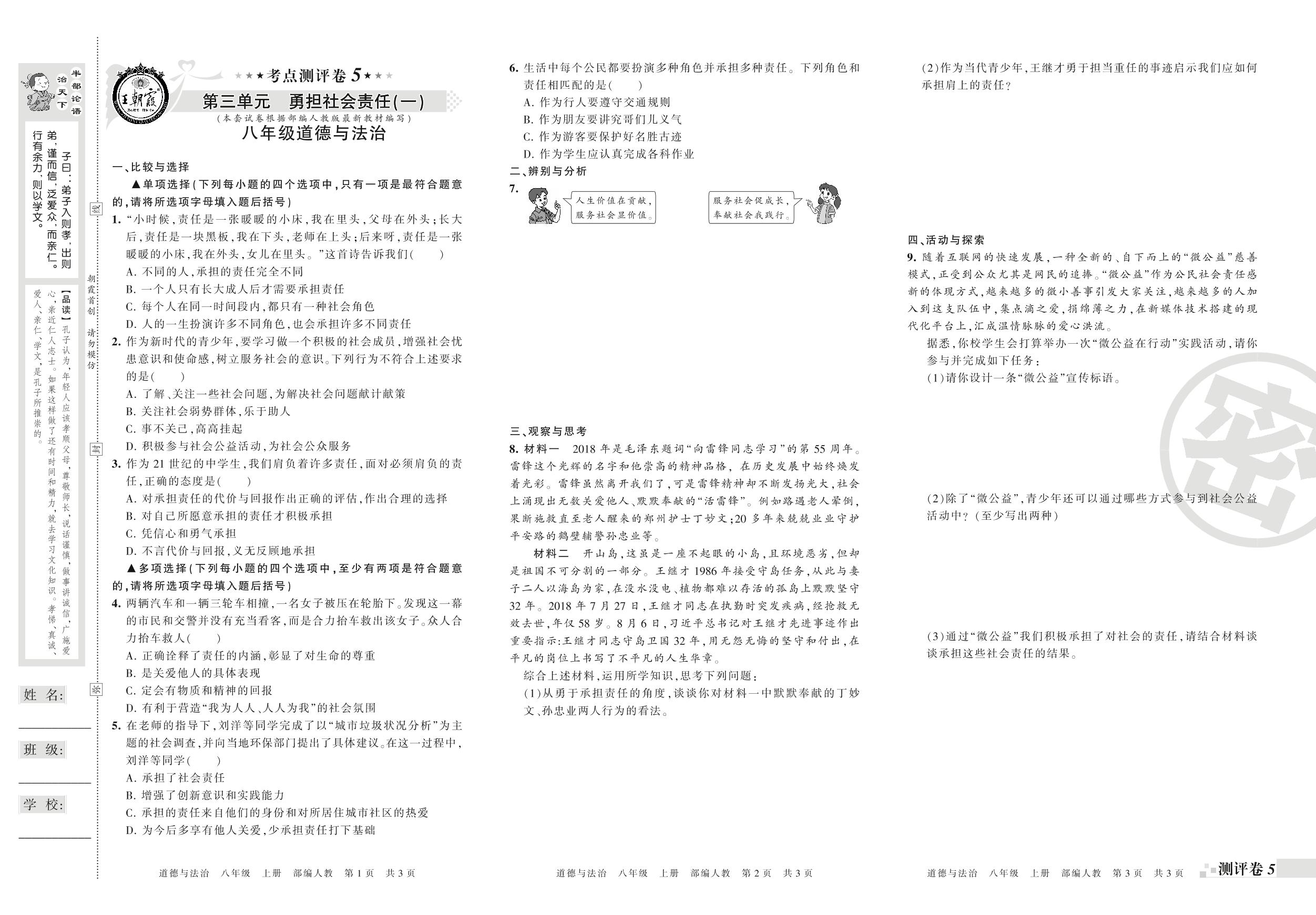 王朝霞期末测评卷——第三单元 勇担社会责任(一)(二)八年级上册道德与法治(人教版)_R210812152233【0】