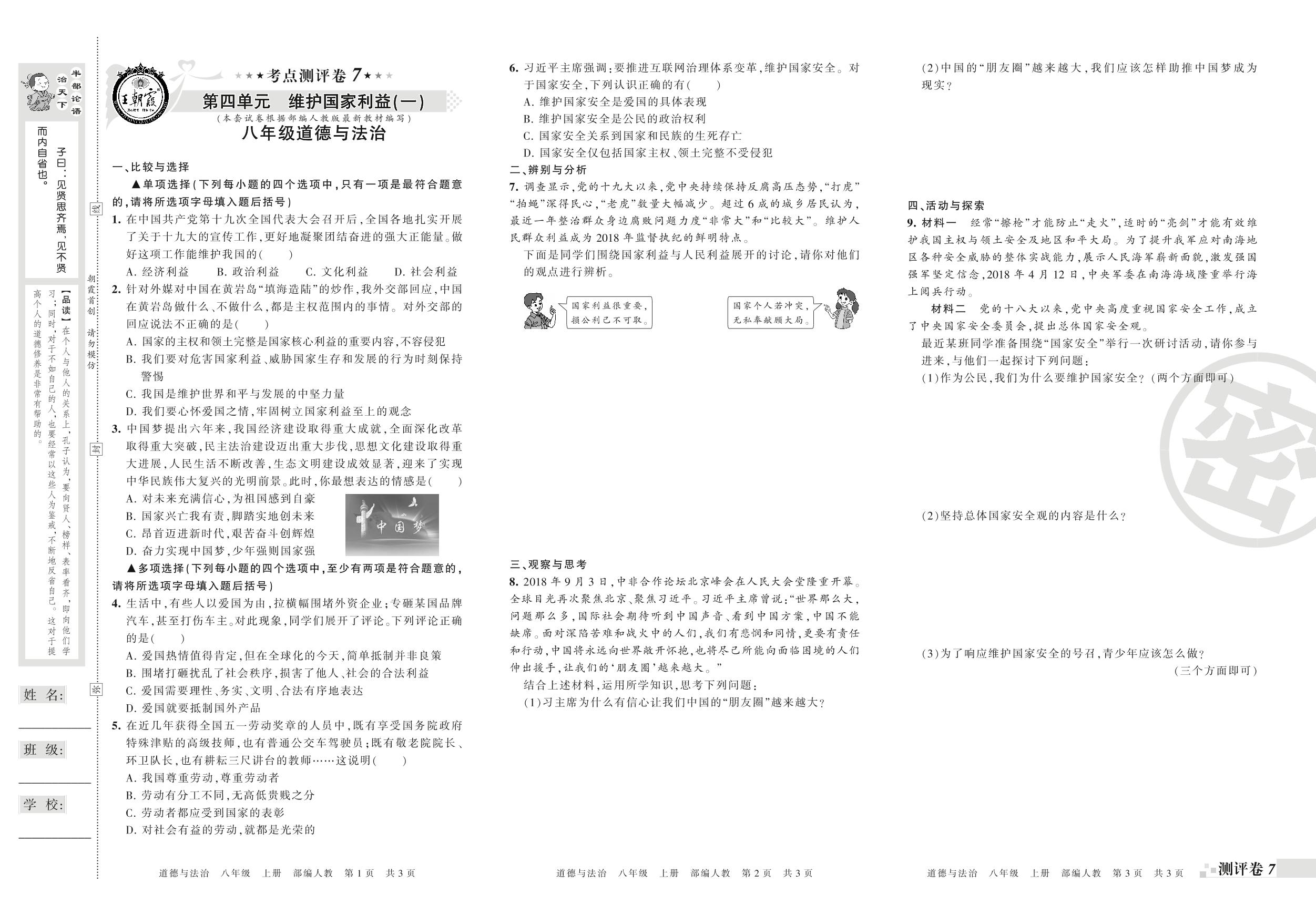 王朝霞期末测评卷————第四单元 维护国家利益(一)(二)八年级上册道德与法治(人教版)_R210812152241【0】