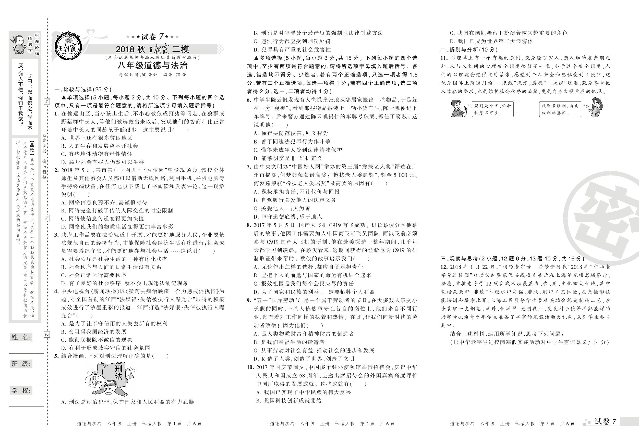 王朝霞期末模拟卷八年级上册道德与法治(人教版)_R210812152328【7】