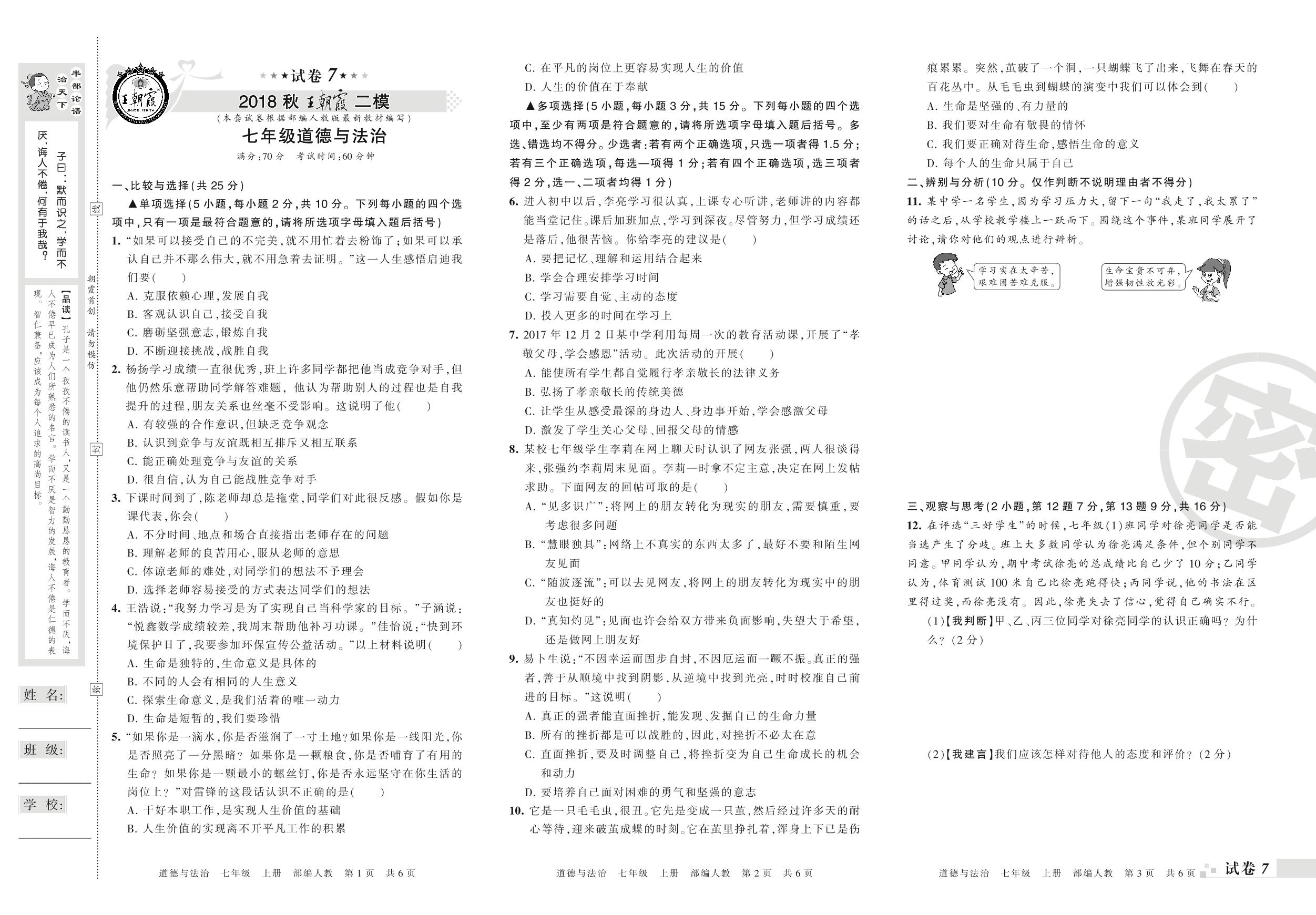 王朝霞期末模拟卷七年级上册道德与法治(人教版)_R210812152625【7】