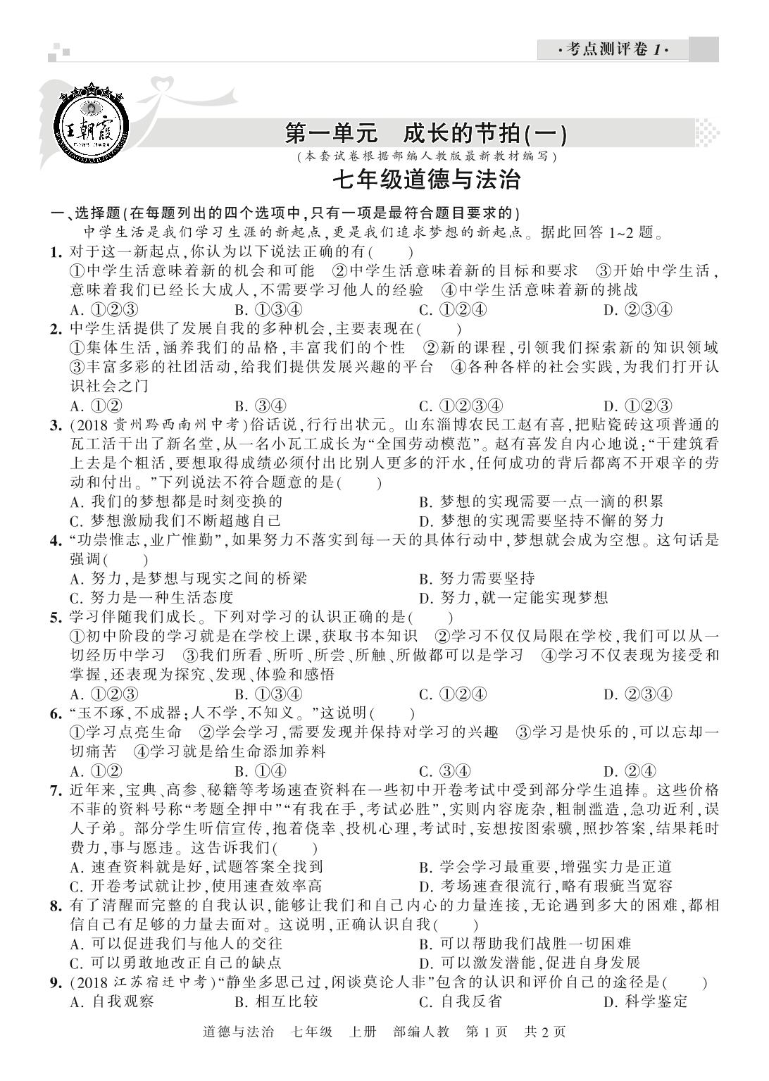 王朝霞期末小卷七年级上册道德与法治(人教版)_R210812152826【0】