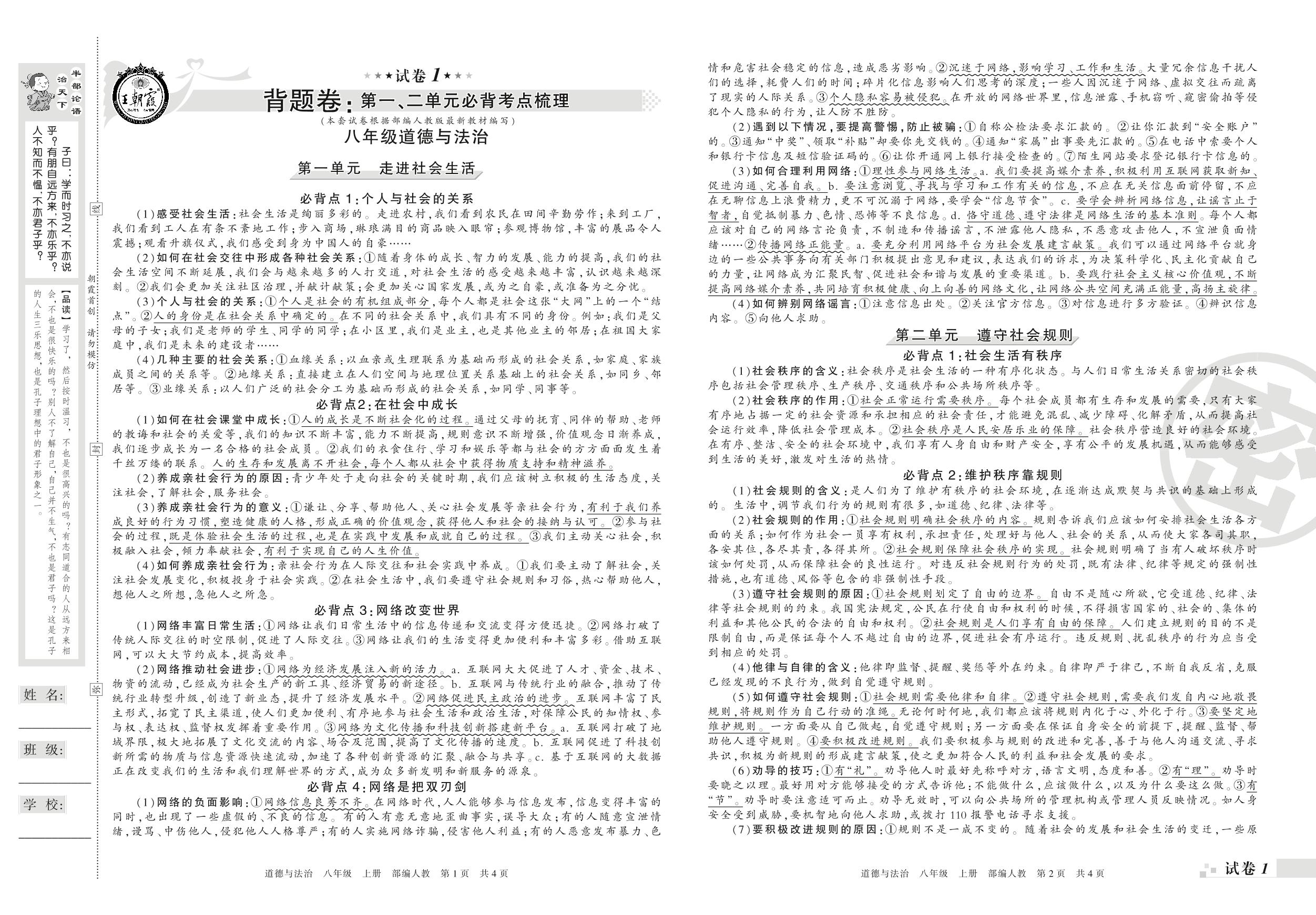 王朝霞期末背题卷——第一、二单元必背考点梳理八年级上册道德与法治(人教版)_R210812152836【1】