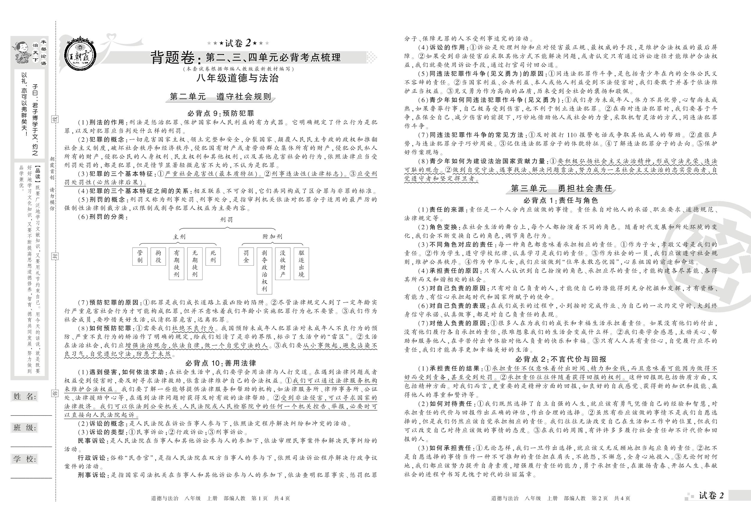 王朝霞期末背题卷——第三、四单元必背考点梳理八年级上册道德与法治(人教版)_R210812152848【2】