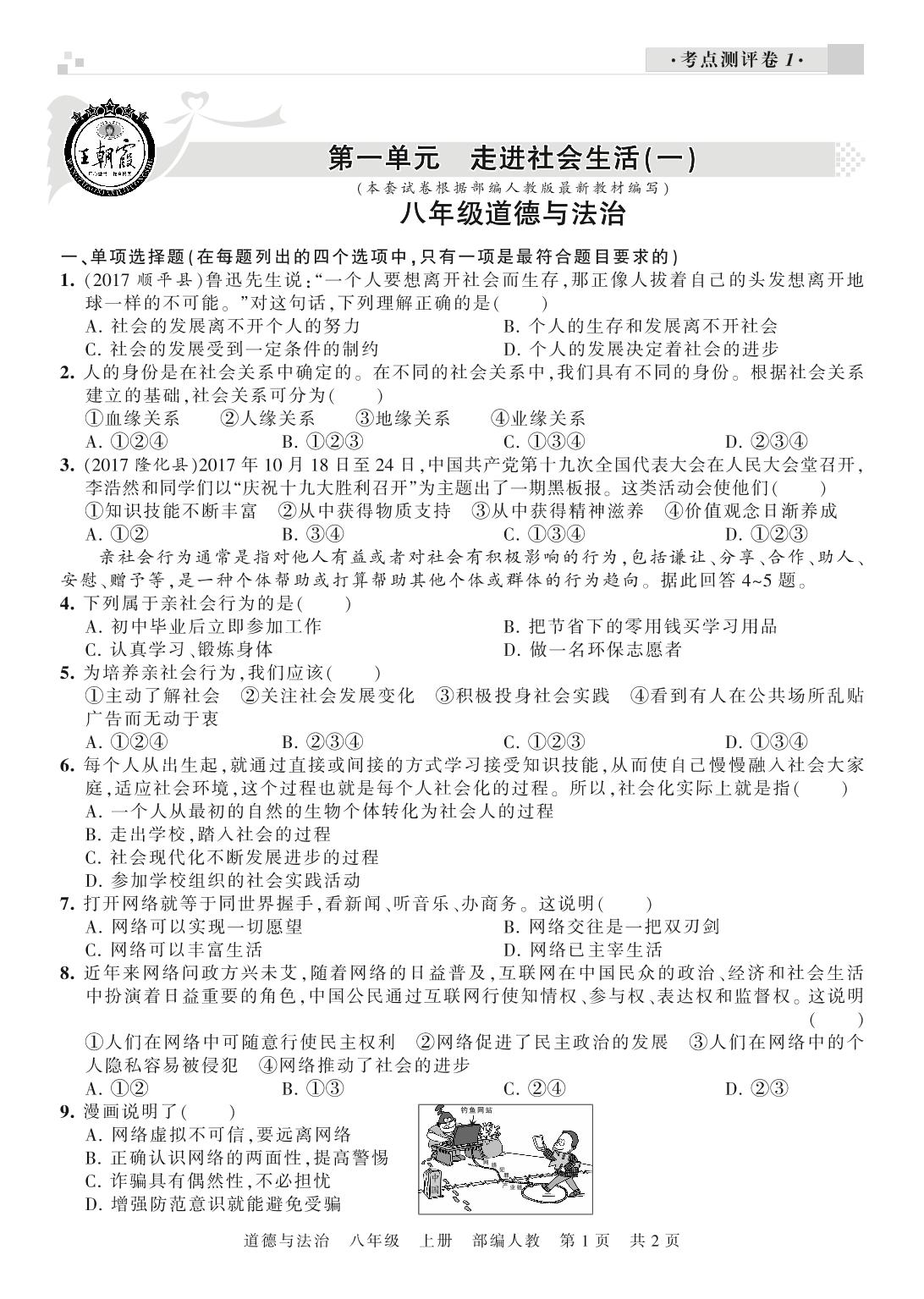 八年级道德与法治人教版上册单元卷