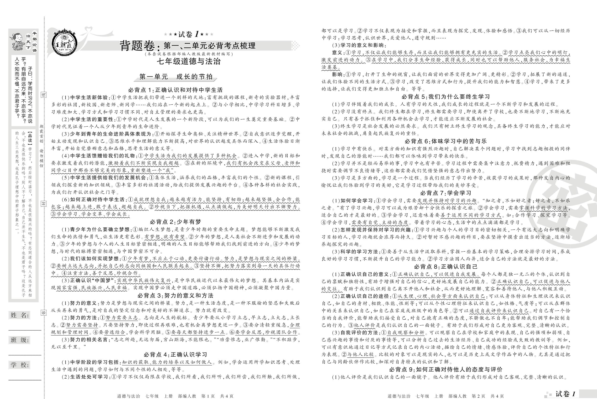 王朝霞期末背题卷——第一、二单元必背考点梳理七年级上册道德与法治(人教版)_R210812153029【1】
