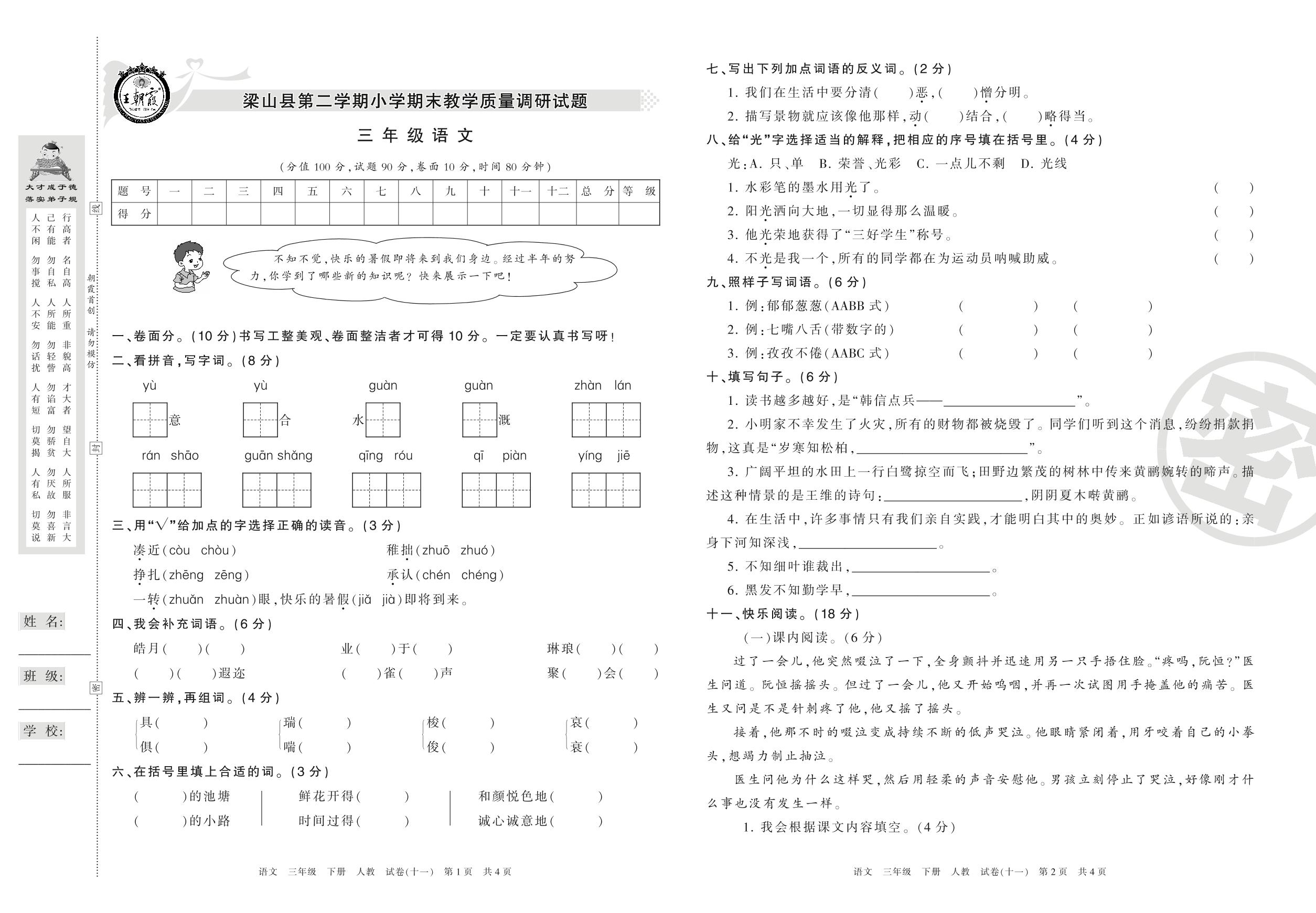 2015-2016学年第二学期济宁市梁山县三年级语文试卷(人教版)【11】