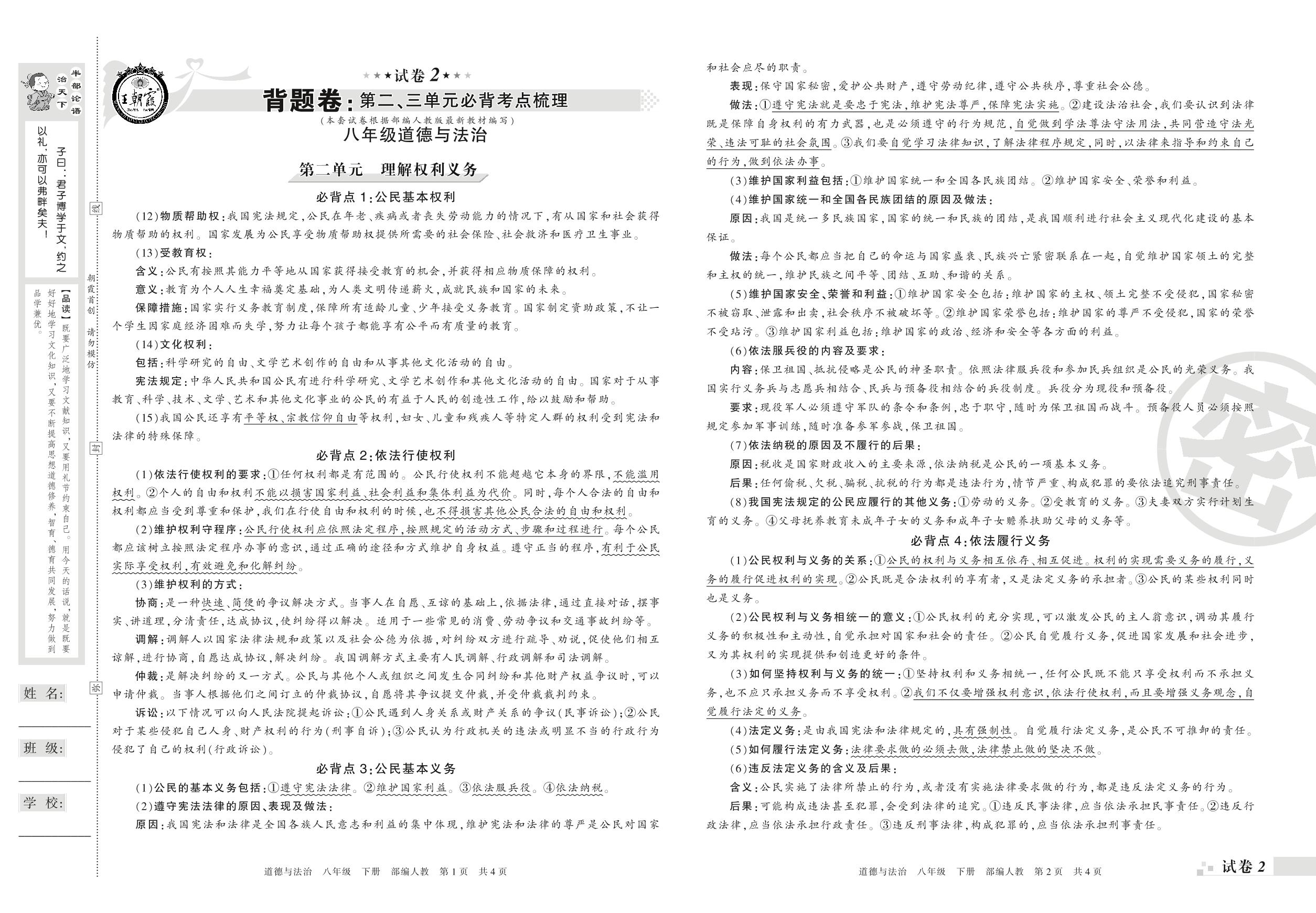 王朝霞期末背题卷——第二、三单元必背考点梳理八年级下册道德与法治(人教版)_R210812154613【2】