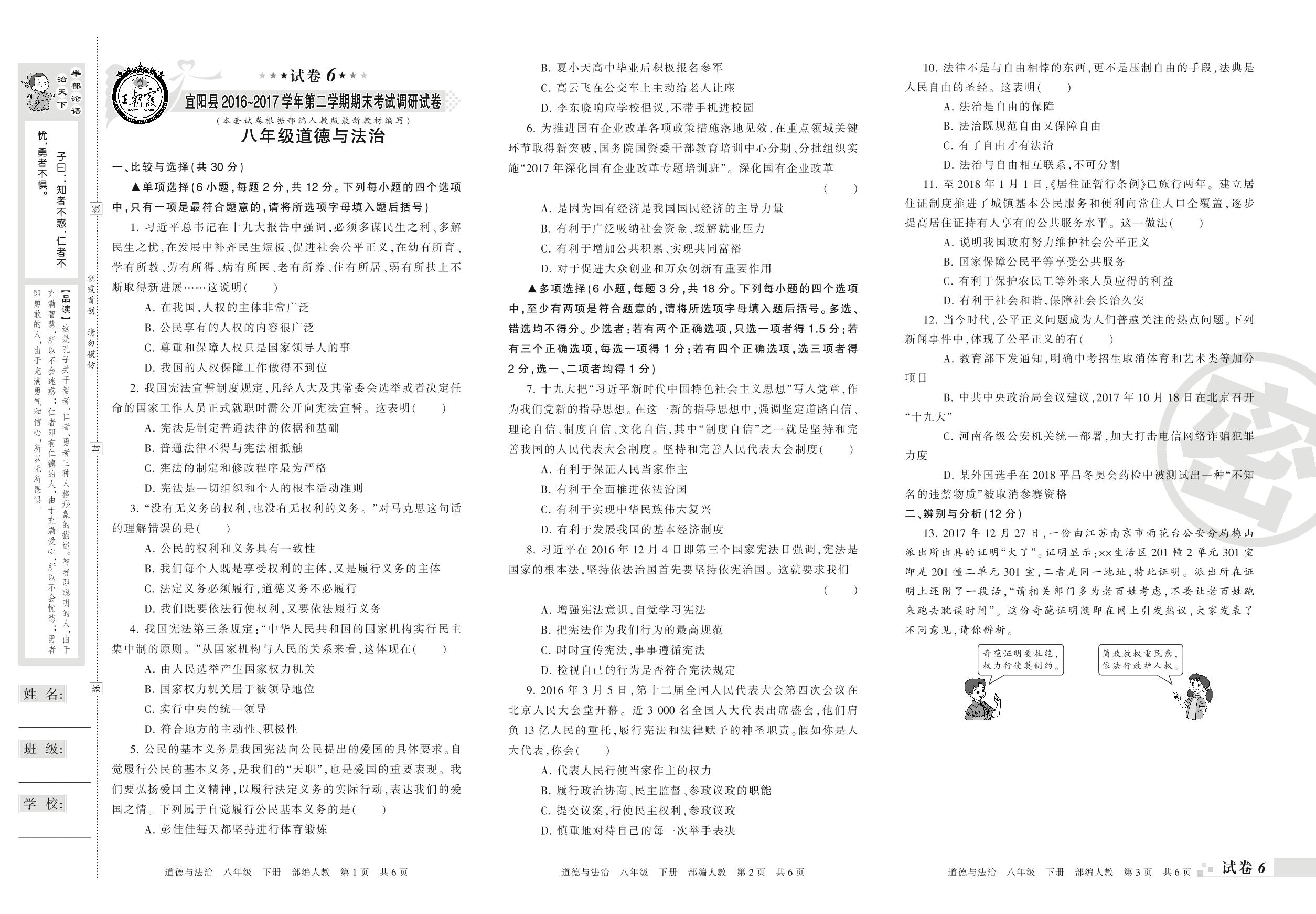 2016-2017学年第二学期洛阳市宜阳县八年级道德与法治试卷(人教版)【6】