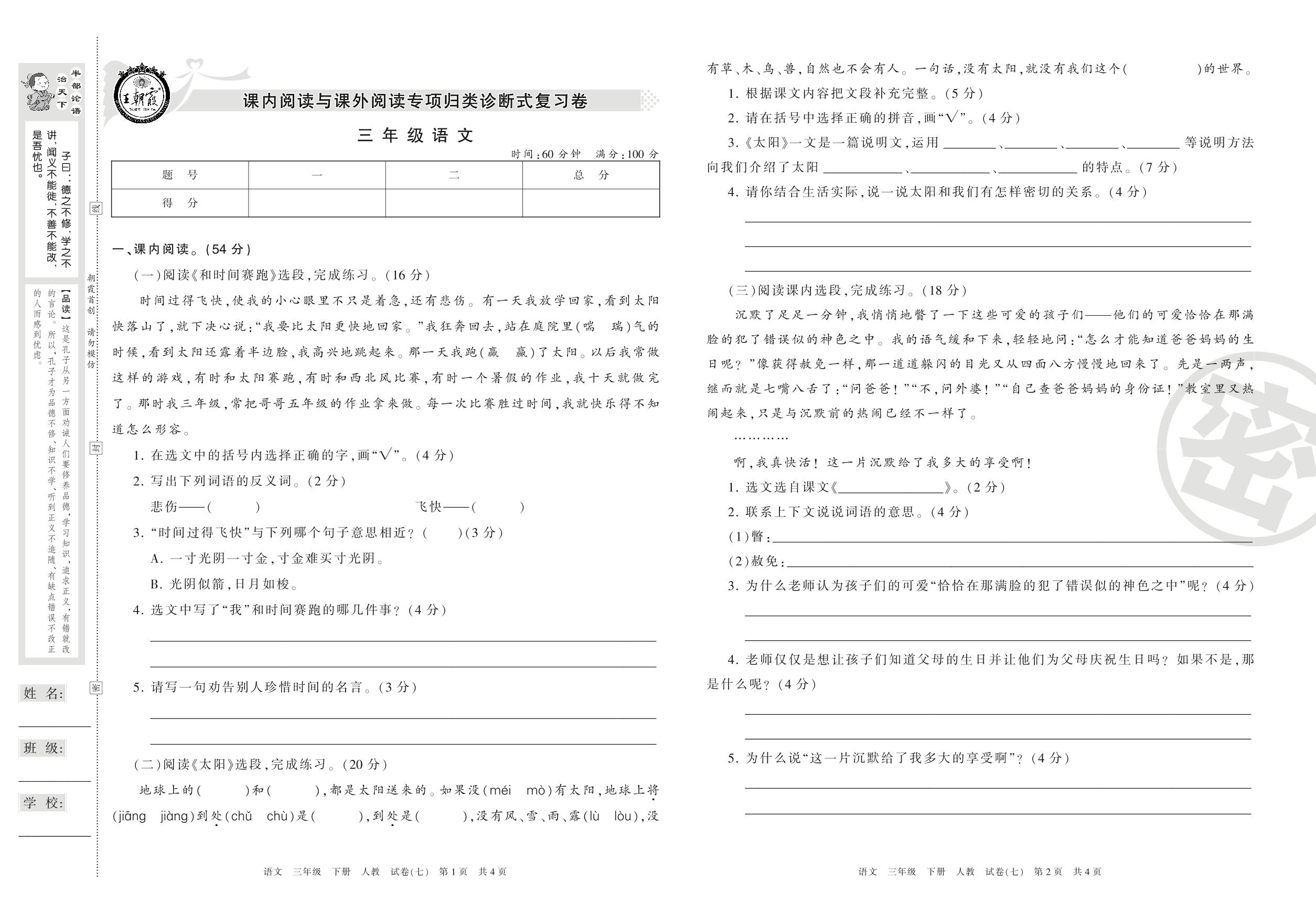 王朝霞期末专项卷三年级下册语文(人教版)_R21080195850【7】