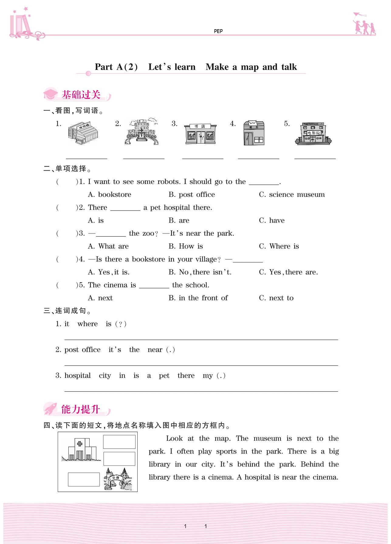 2020上册六年级英语人教PEP版 Unit 1—Part A(2) Let’s learn Make a map and talk