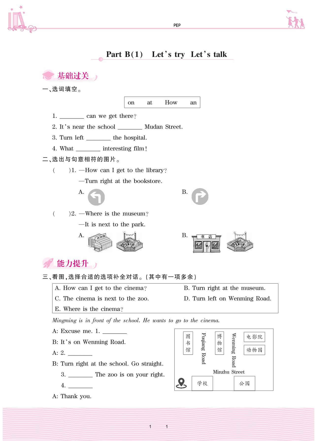 六年级英语人教PEP版(三起始)上册课时作业