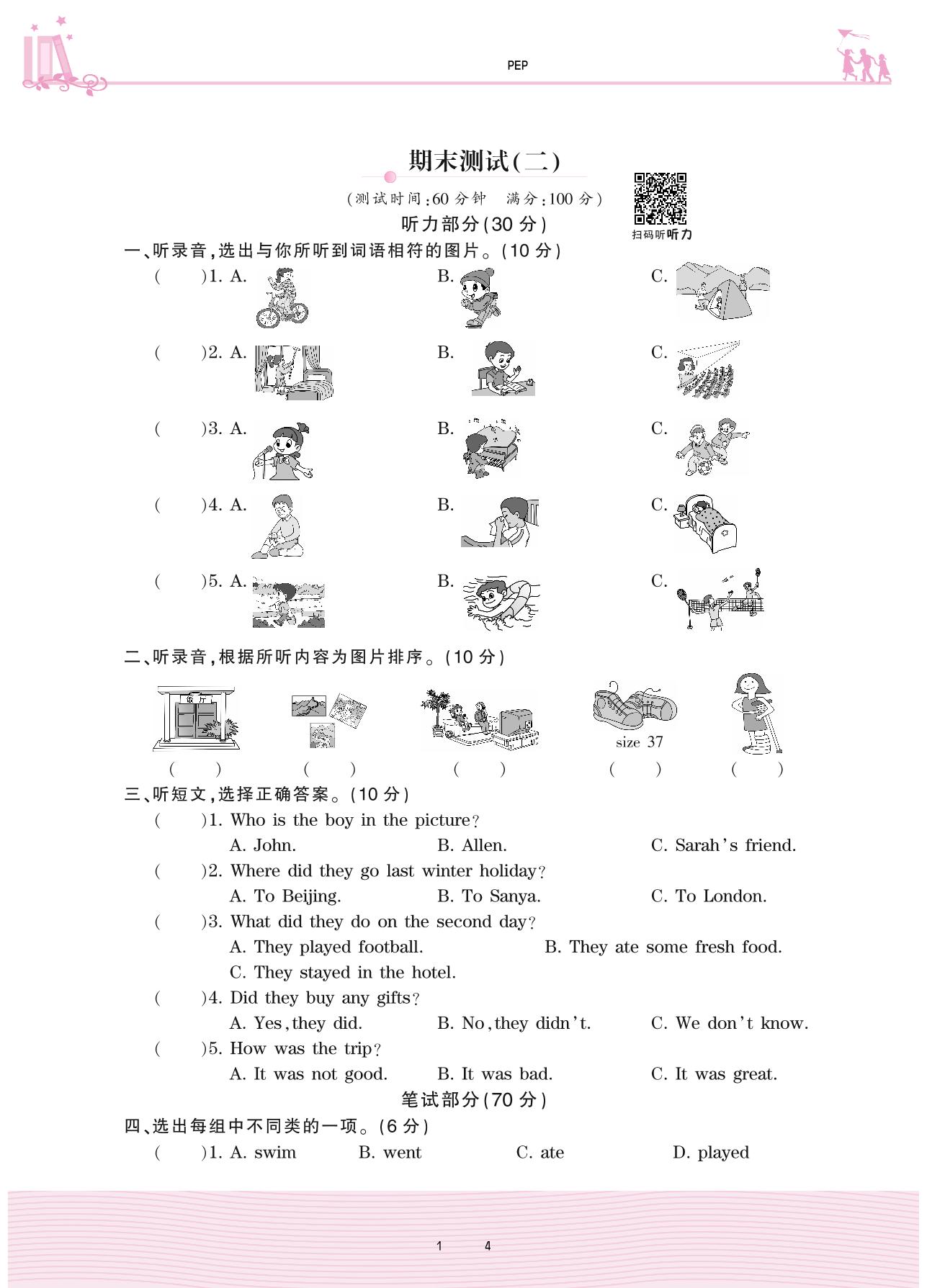 六年级英语人教PEP版(三起始)下册期末卷