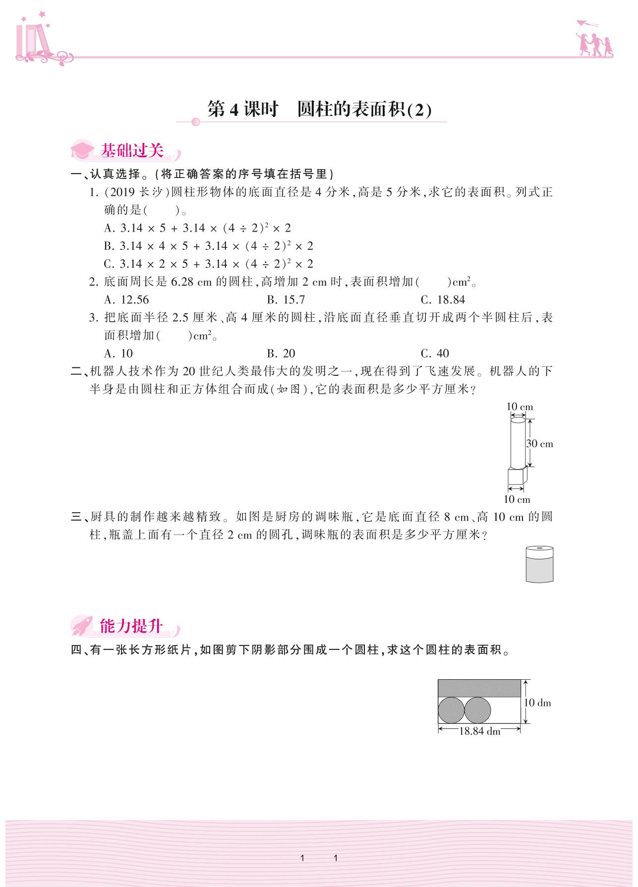 二 圆柱和圆锥——第4课时 圆柱的表面积(2)