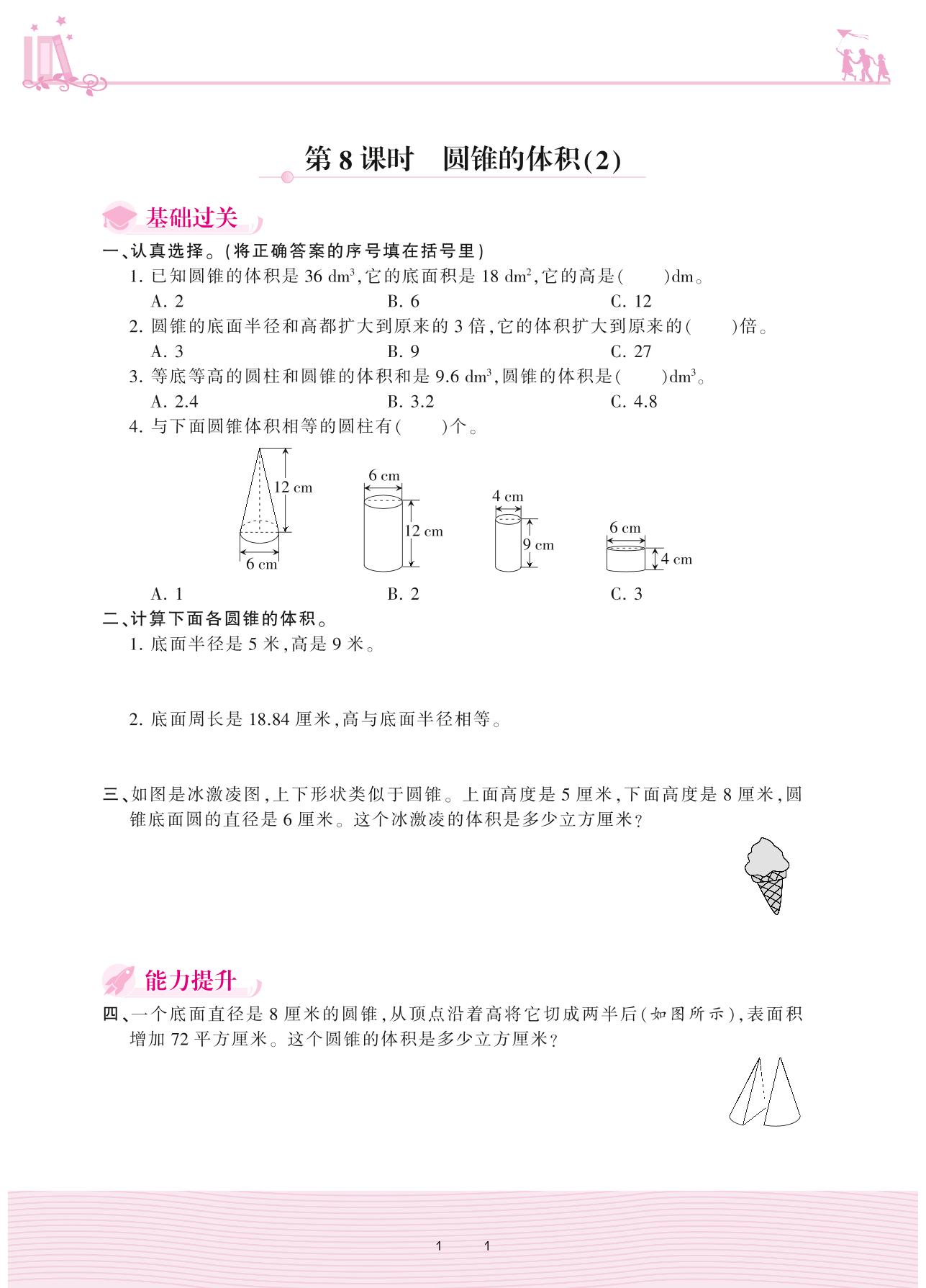 二 圆柱和圆锥——第8课时 圆锥的体积(2)
