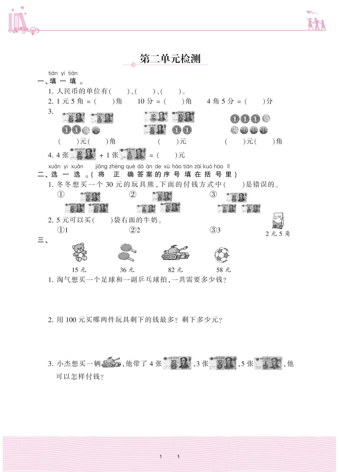 2020上册二年级数学北师版 二 购物——第二单元检测