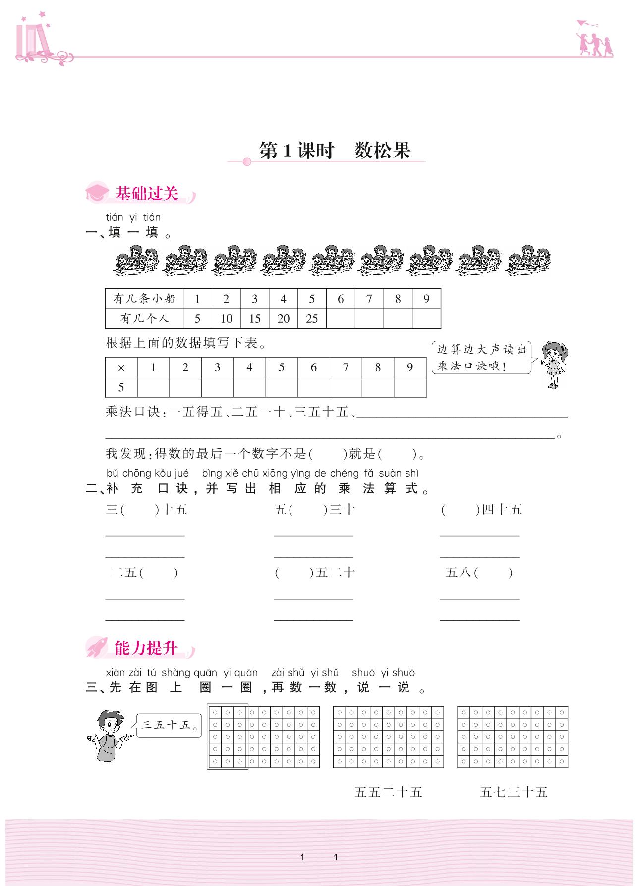 2020上册二年级数学北师版 五 2~5的乘法口诀——第1课时 数松果