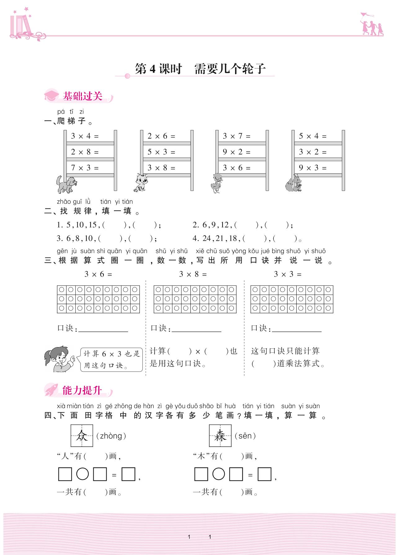 2020上册二年级数学北师版 五 2~8的乘法口诀——第4课时 需要几个轮子