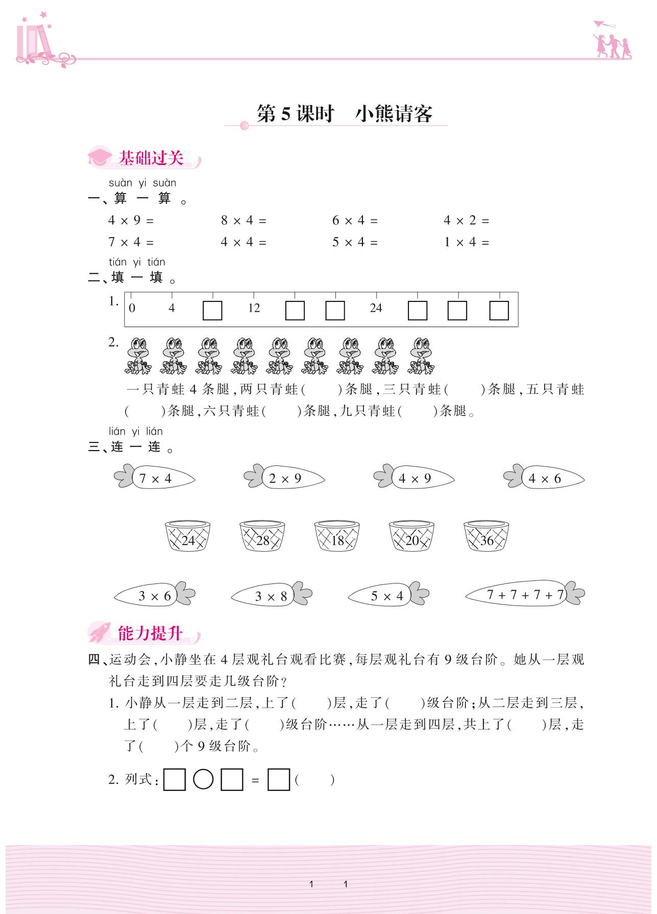2020上册二年级数学北师版 五 2~9的乘法口诀——第5课时 小熊请客