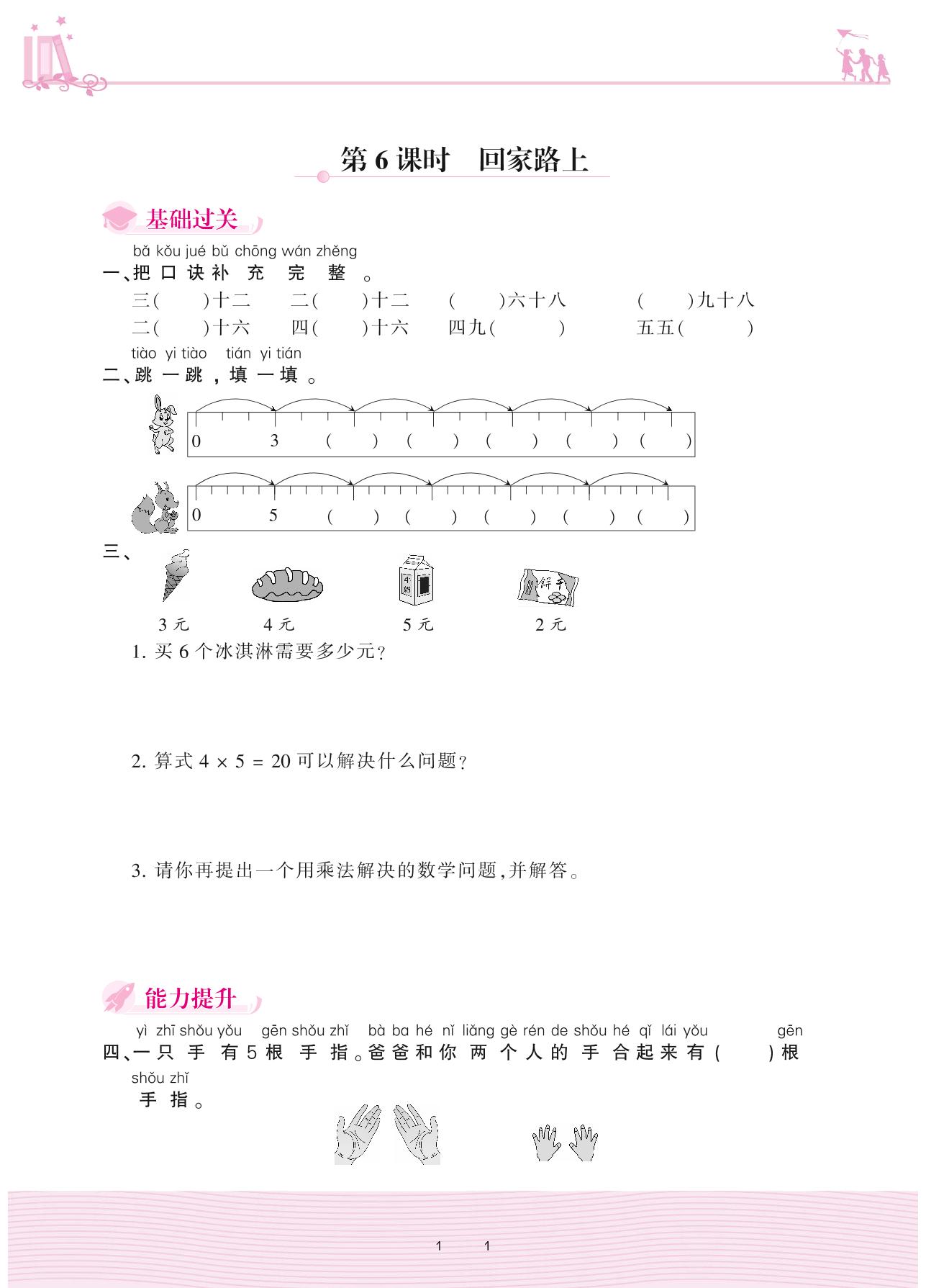 2020上册二年级数学北师版 五 2~10的乘法口诀——第6课时 回家路上