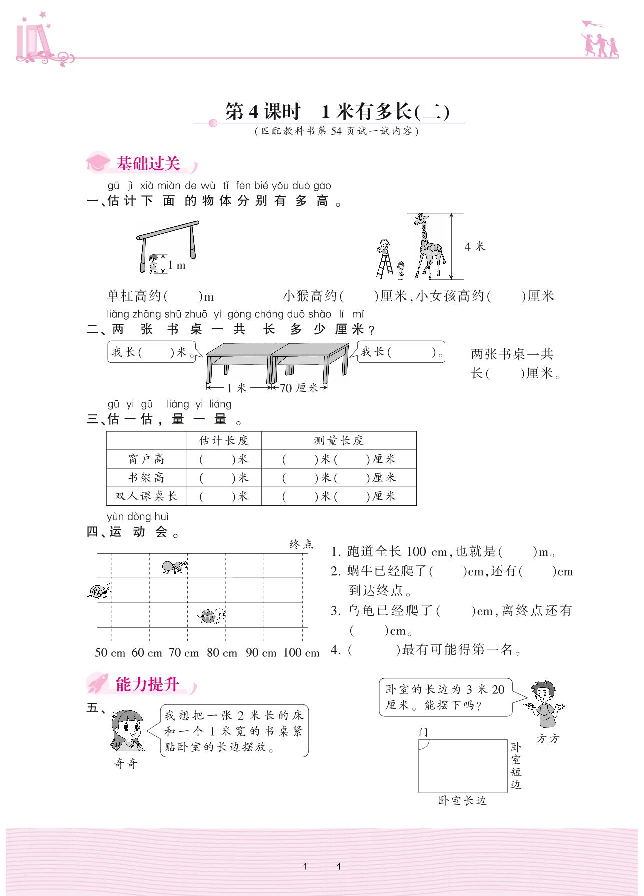 2020上册二年级数学北师版 六 测量——第4课时 1米有多长(二)