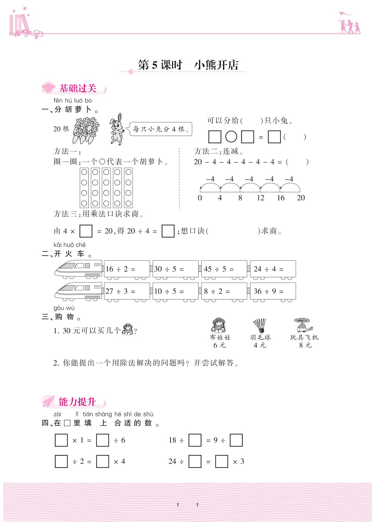 2020上册二年级数学北师版 七 分一分与除法——第5课时 小熊开店