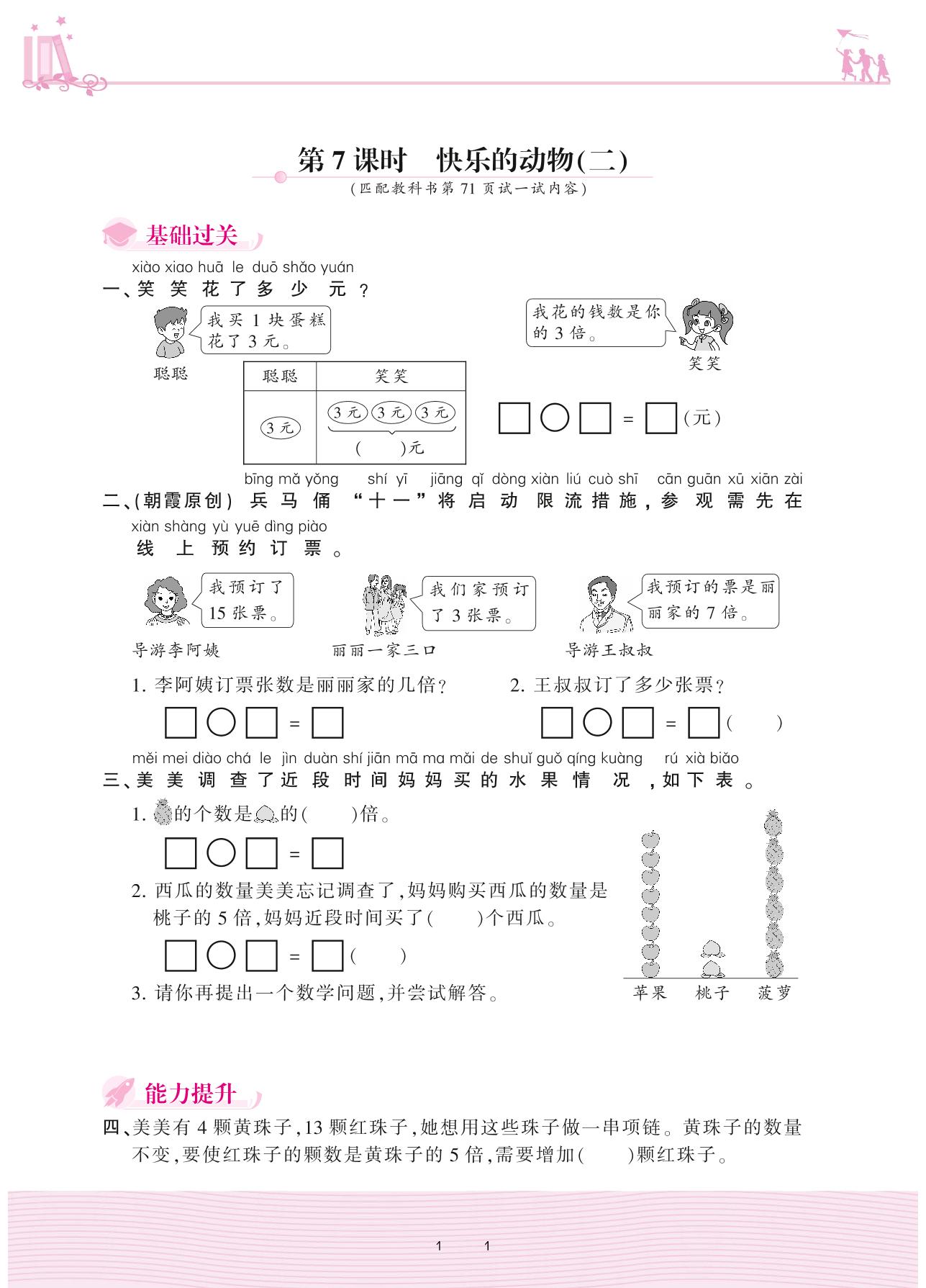 2020上册二年级数学北师版 七 分一分与除法——第7课时 快乐的动物(二)