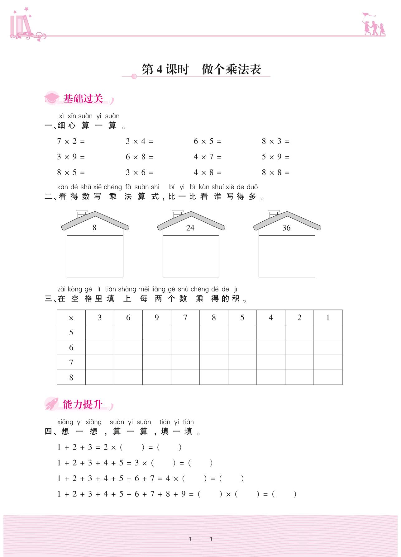 2020上册二年级数学北师版 八 6~13的乘法口诀——第4课时 做个乘法表