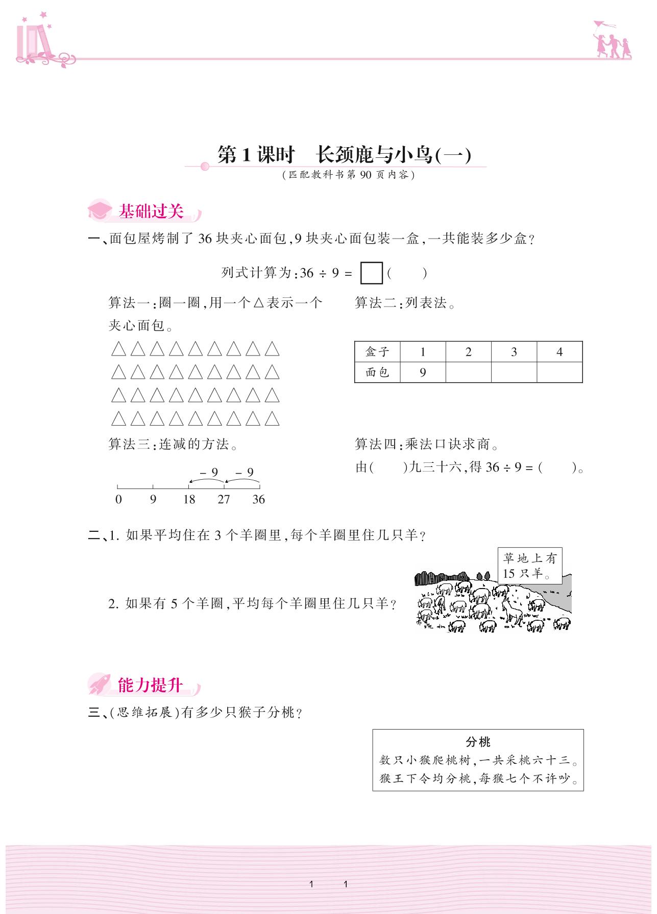 2020上册二年级数学北师版 九 除法——第1课时 长颈鹿与小鸟(一)