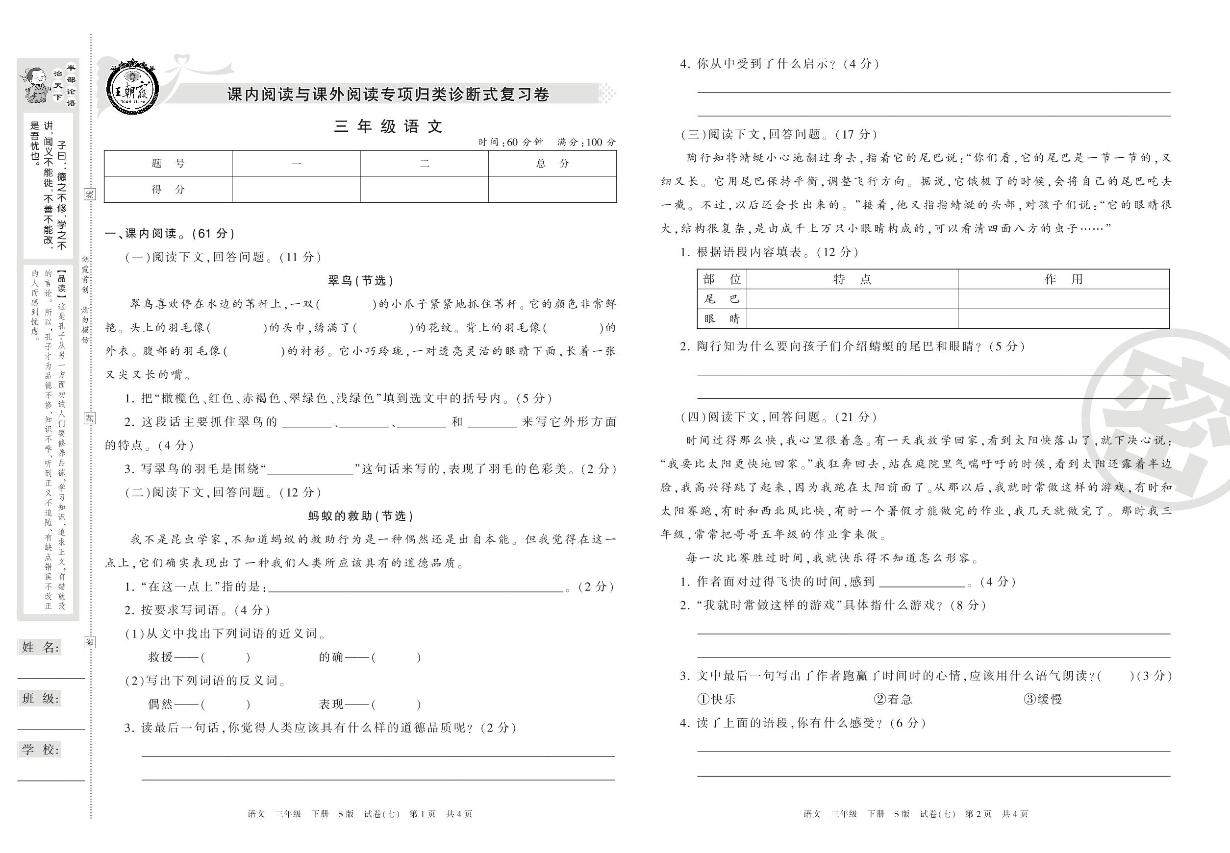 王朝霞期末专项卷三年级下册语文(S版)_R210801100036【7】