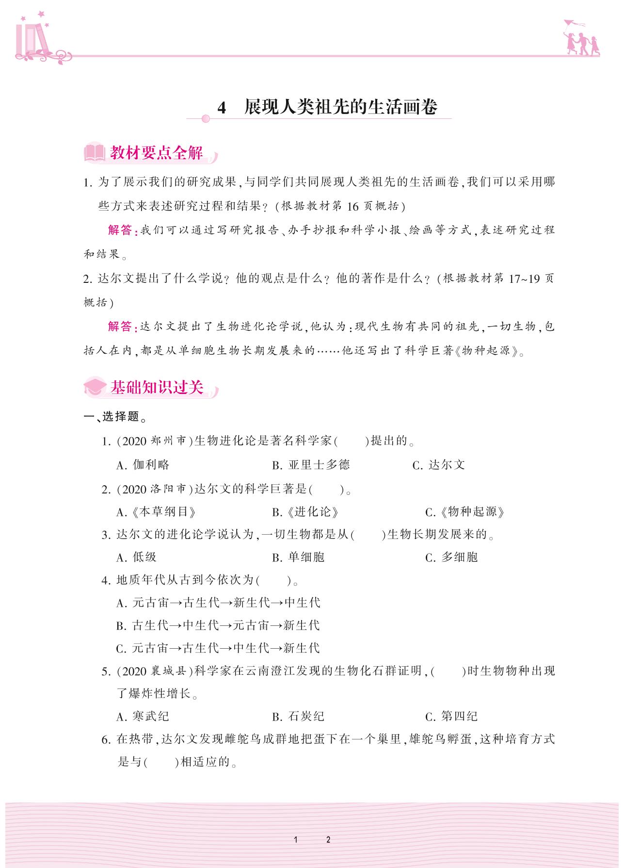 2021下册六年级科学大象版 第一单元 人类祖先的足迹——4 展现人类祖先的生活画卷全国课时卷