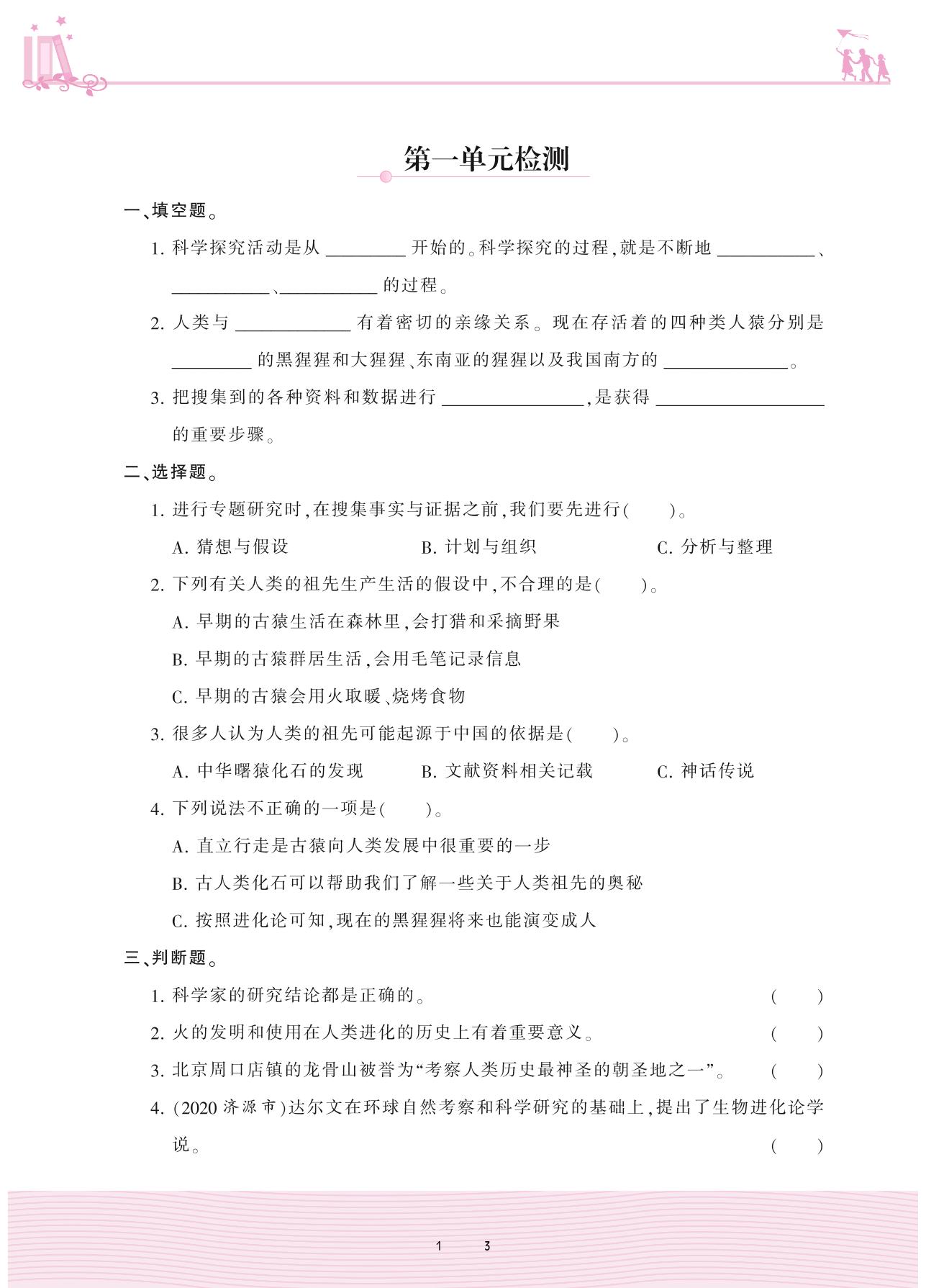 2021下册六年级科学大象版 第一单元 人类祖先的足迹——第一单元检测全国单元卷
