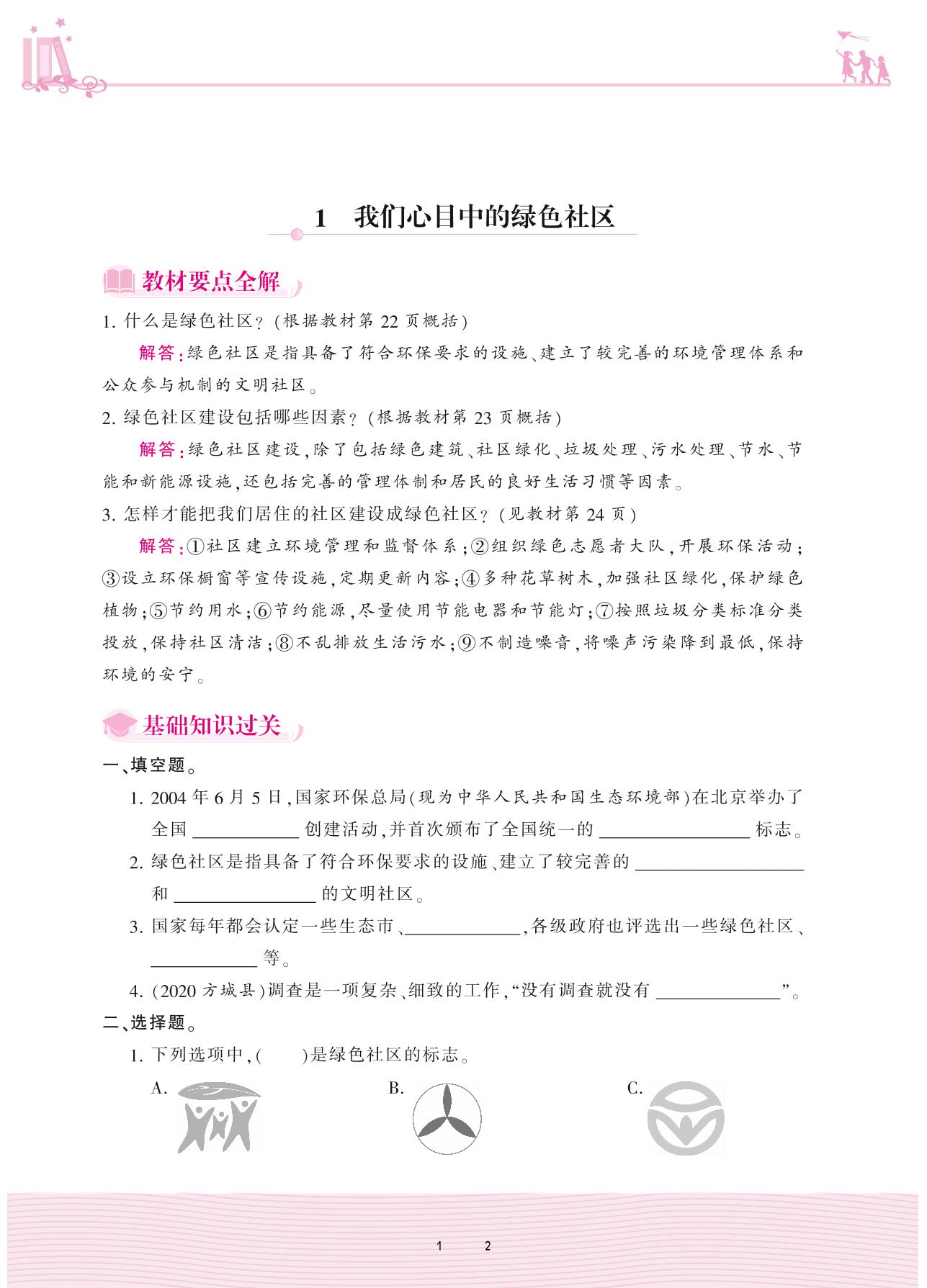 2021下册六年级科学大象版 第二单元 绿色社区调查——1 我们心目中的绿色社区全国课时卷