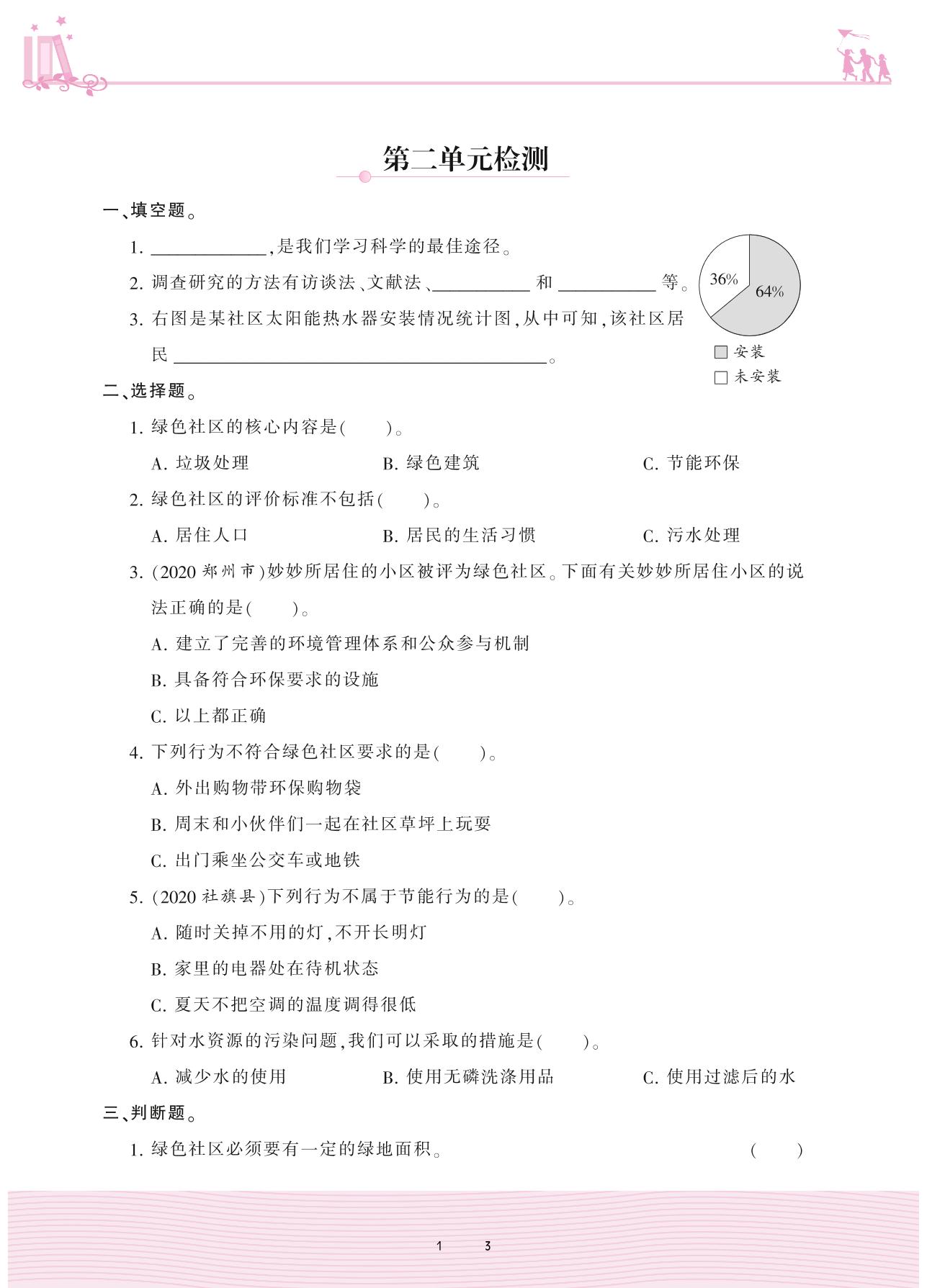 2021下册六年级科学大象版 第二单元 绿色社区调查——第二单元检测全国单元卷