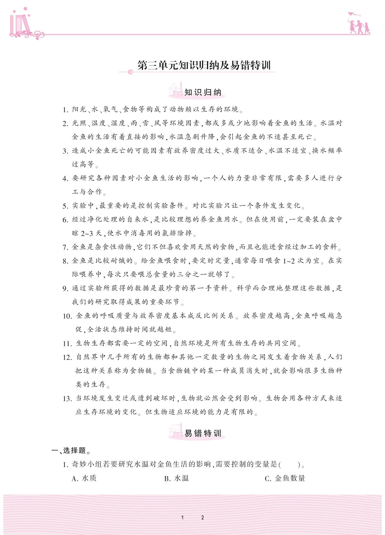 第三单元 养好小金鱼——第三单元知识归纳及易错特训