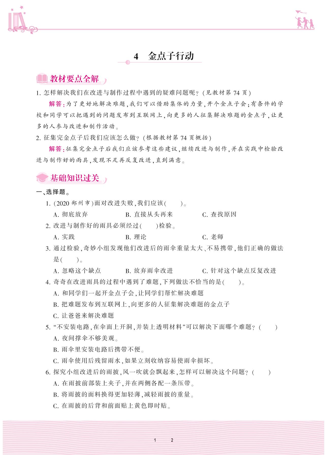 2021下册六年级科学大象版 第四单元 雨具的改进——4 金点子行动全国课时卷