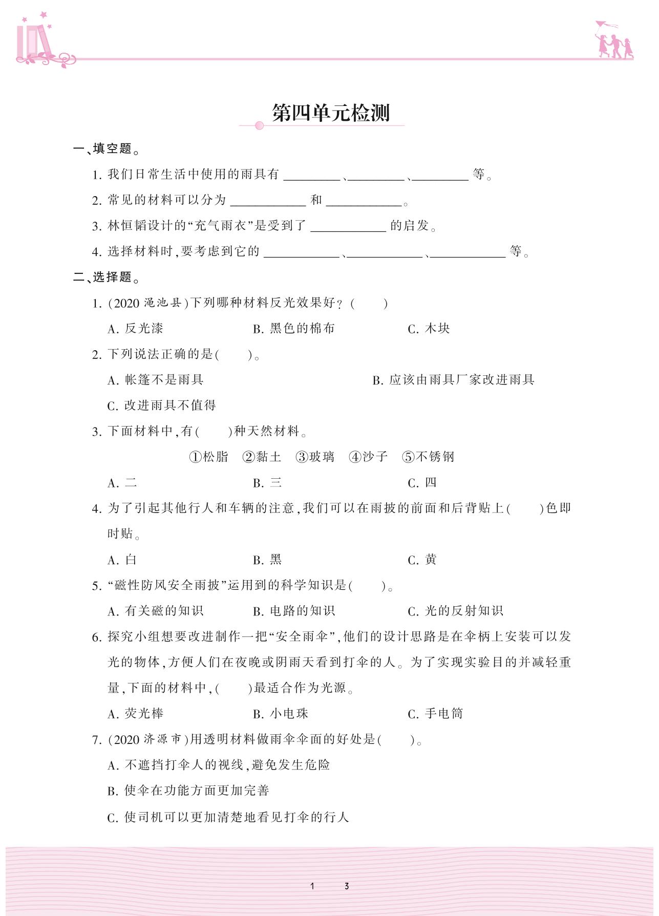 2021下册六年级科学大象版 第四单元 雨具的改进——第四单元检测全国单元卷