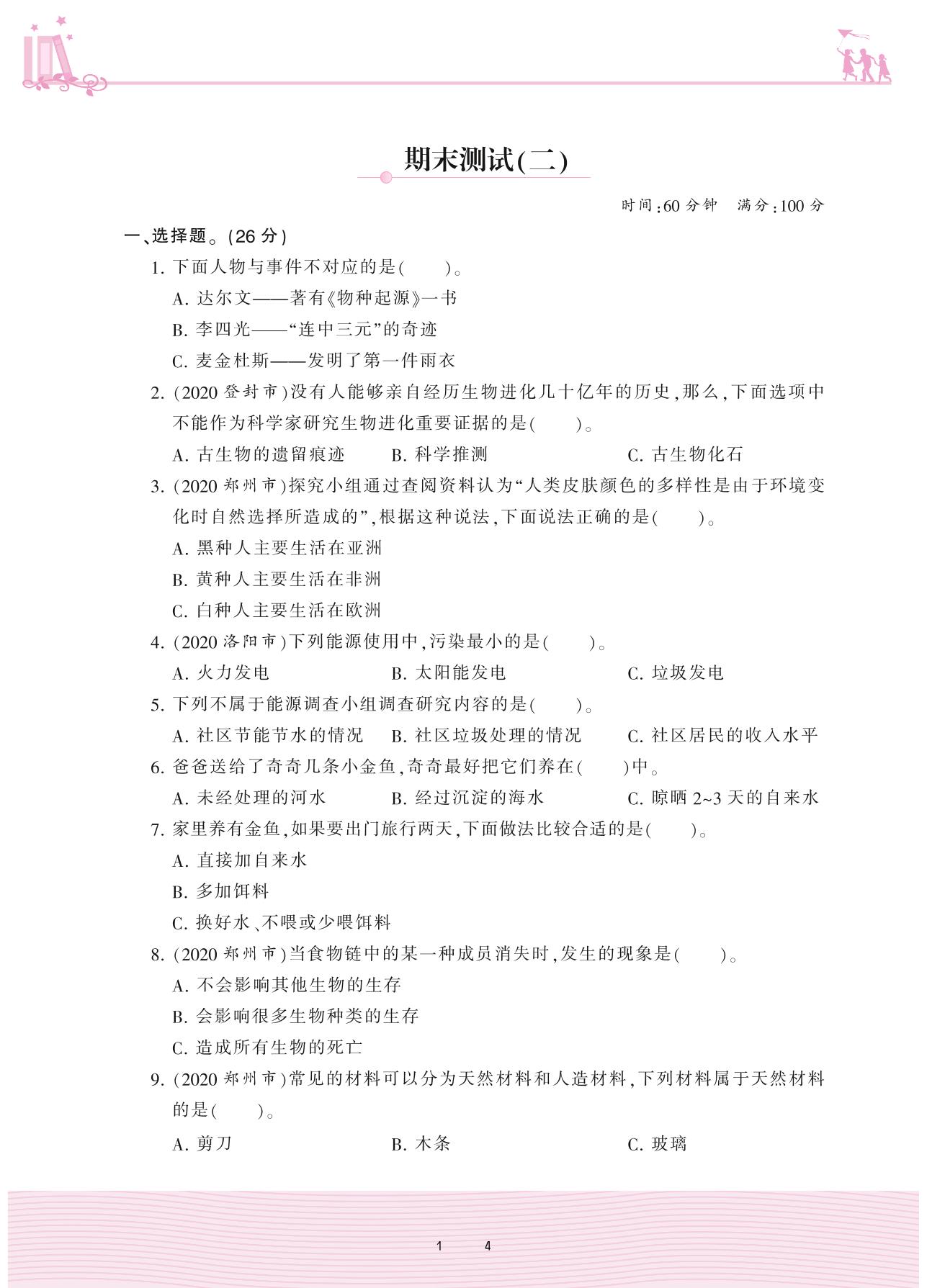 2021下册六年级科学大象版 期末测试(二)全国期末卷