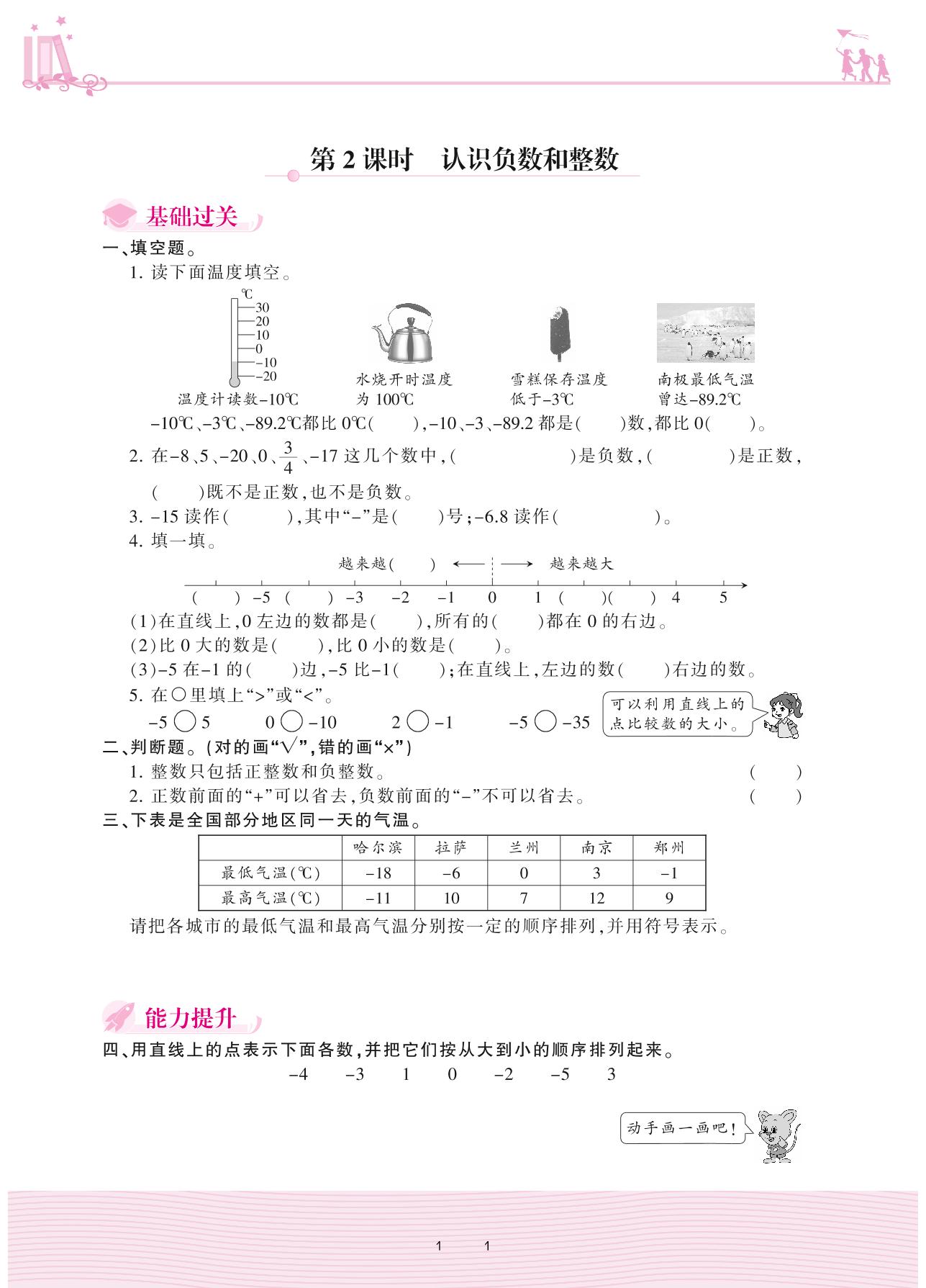 2021下册六年级数学冀教版 一 生活中的负数——第2课时 认识负数和整数