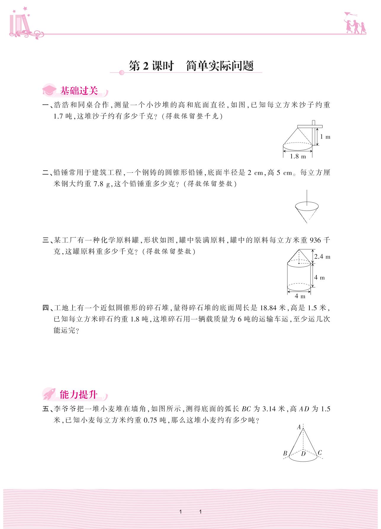2021下册六年级数学冀教版 四 圆柱和圆锥 4. 圆锥——第2课时 简单实际问题