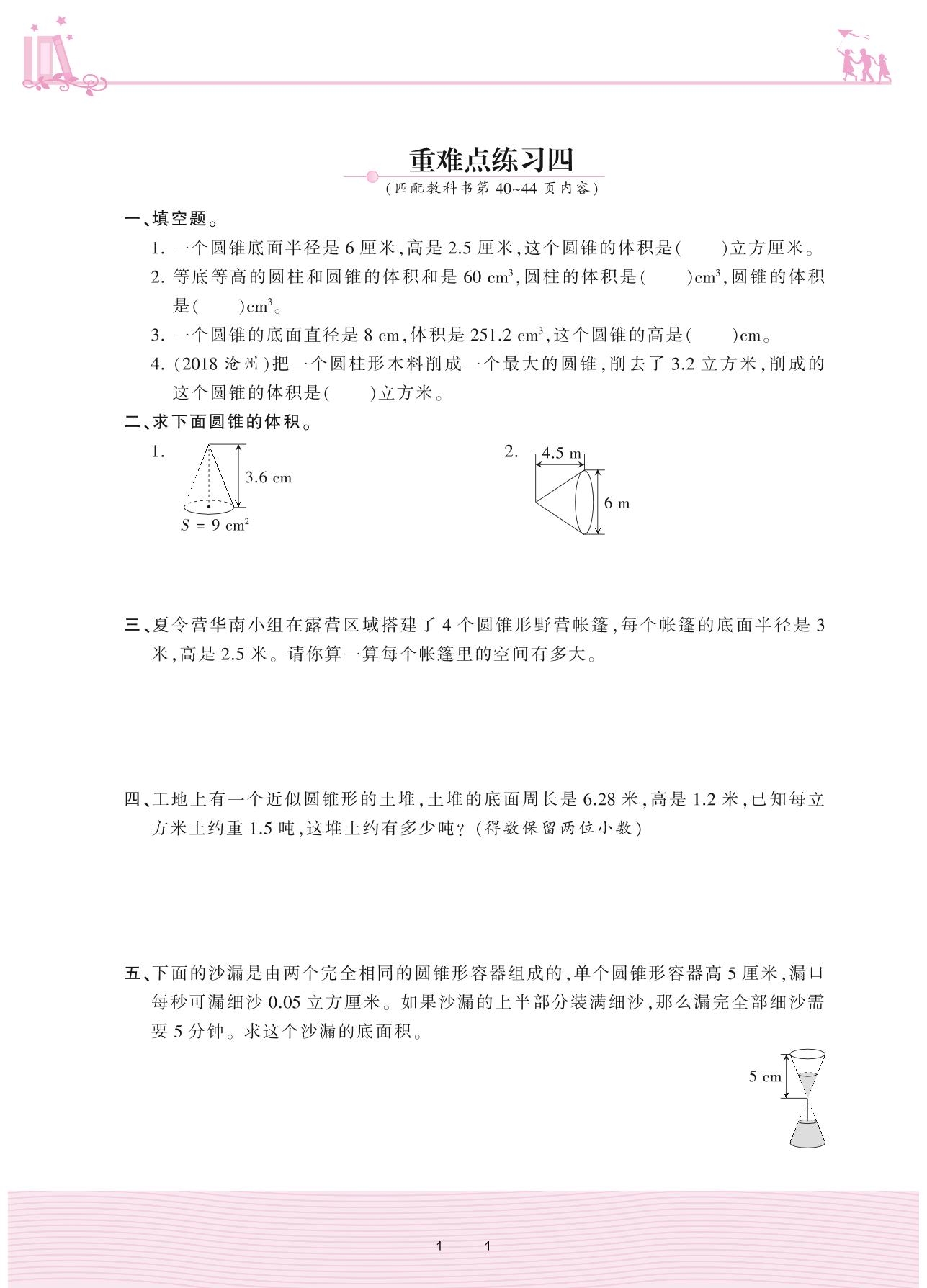 2021下册六年级数学冀教版 四 圆柱和圆锥 4. 圆锥——重难点练习四