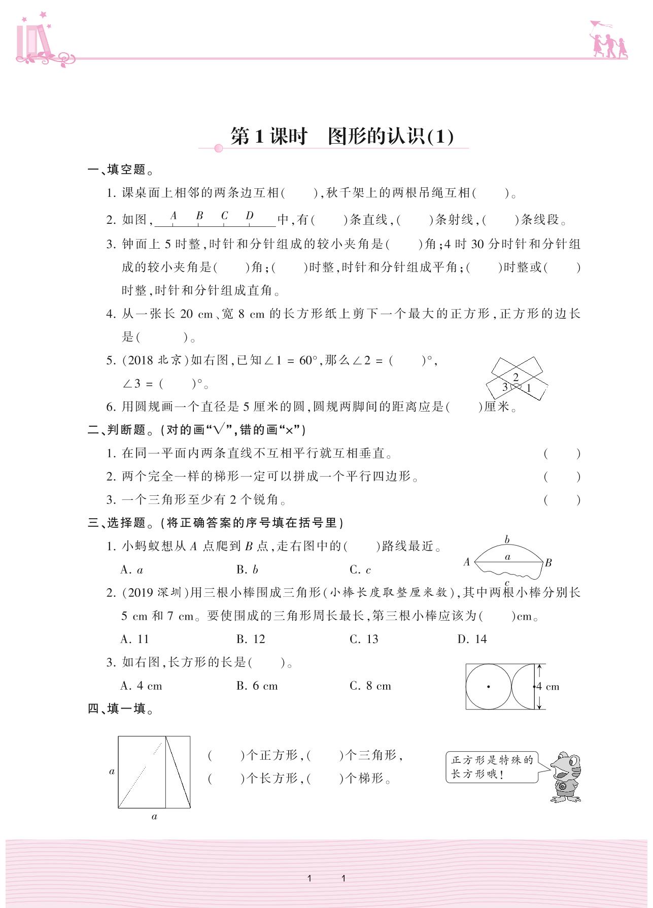 2021下册六年级数学冀教版 六 回顾与整理 (二)图形与几何——第1课时 图形的认识(1)