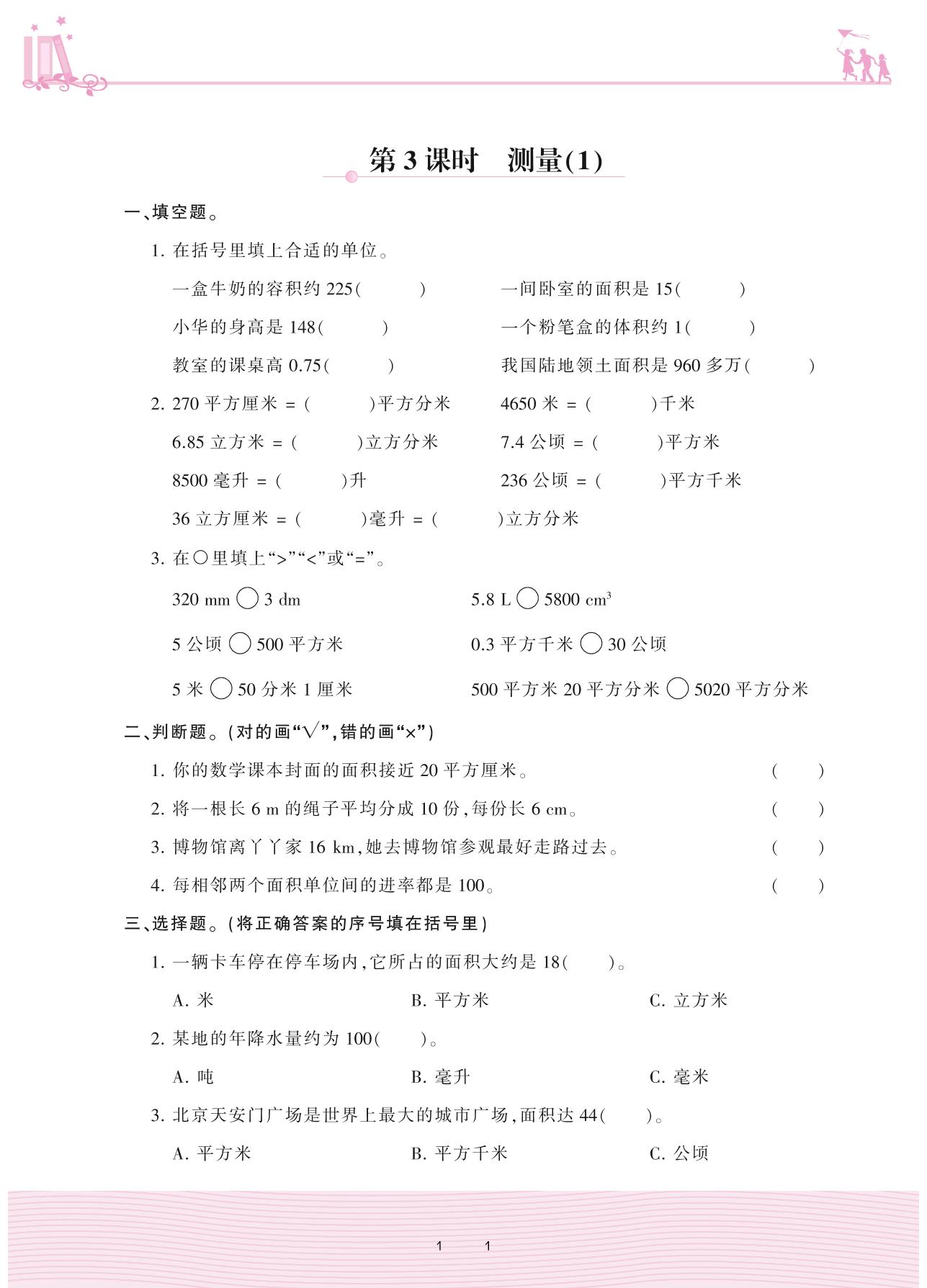 2021下册六年级数学冀教版 六 回顾与整理 (二)图形与几何——第3课时 测量(1)