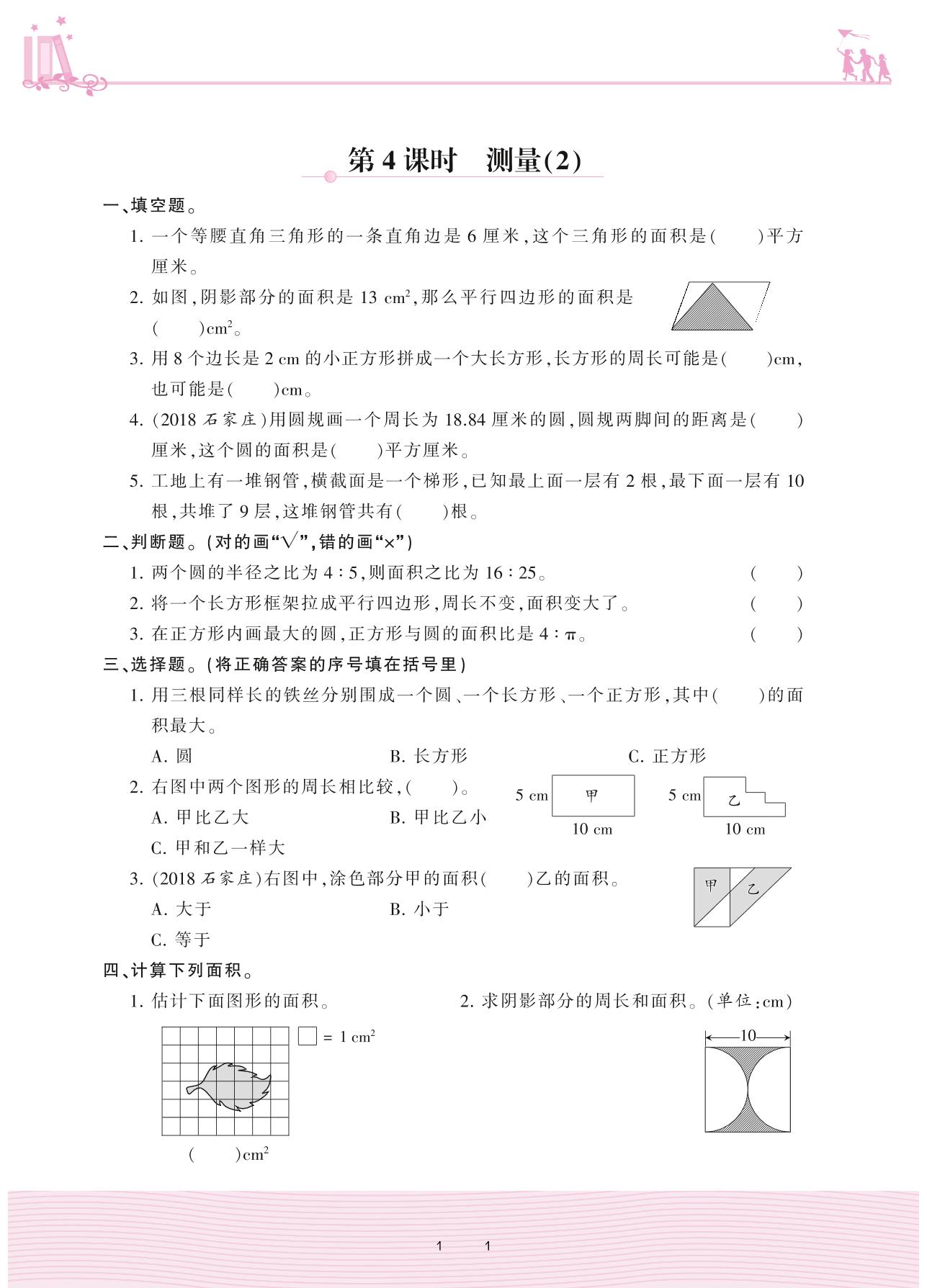 2021下册六年级数学冀教版 六 回顾与整理 (二)图形与几何——第4课时 测量(2)