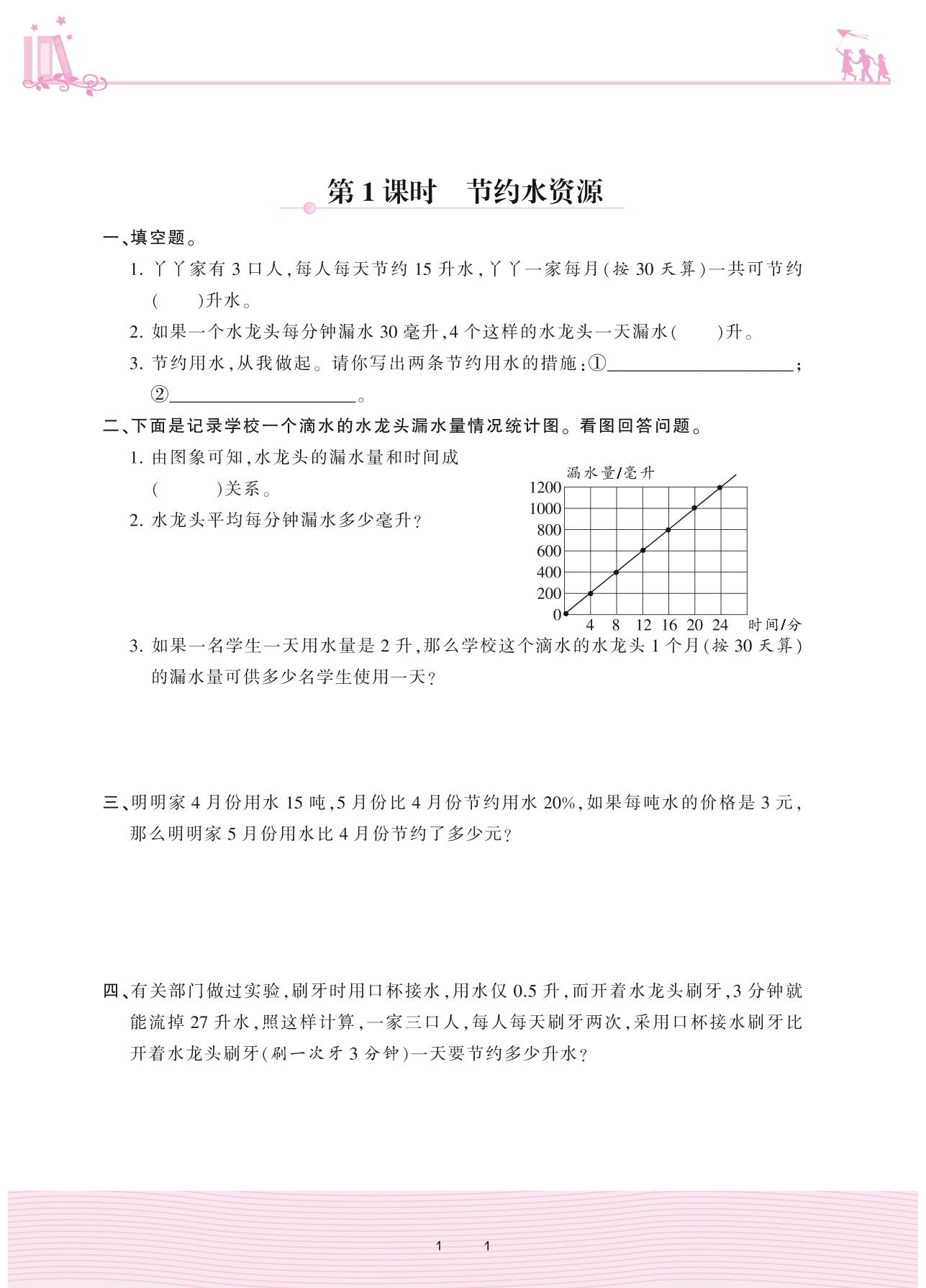 2021下册六年级数学冀教版 六 回顾与整理 (四)综合与实践——第1课时 节约水资源