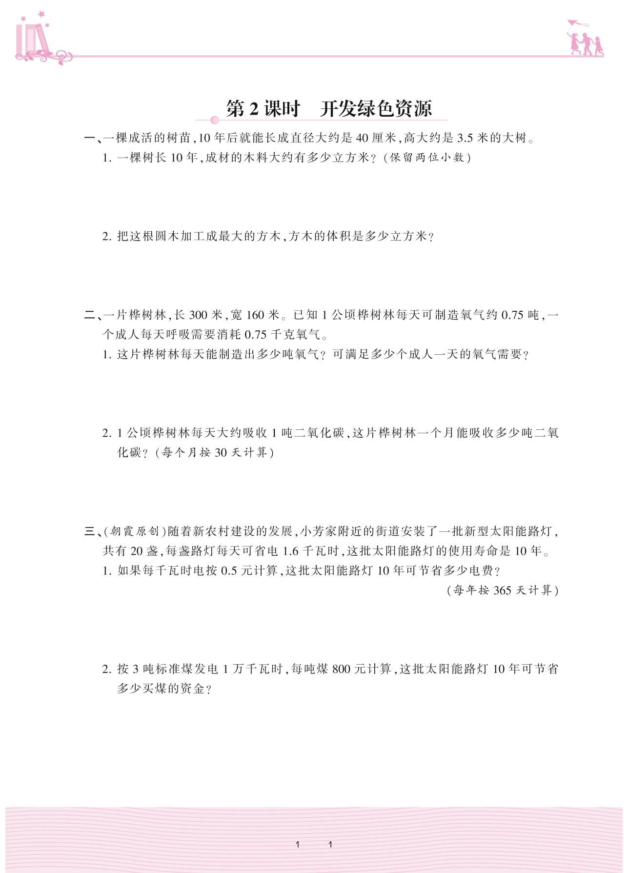 2021下册六年级数学冀教版 六 回顾与整理 (四)综合与实践——第2课时 开发绿色资源