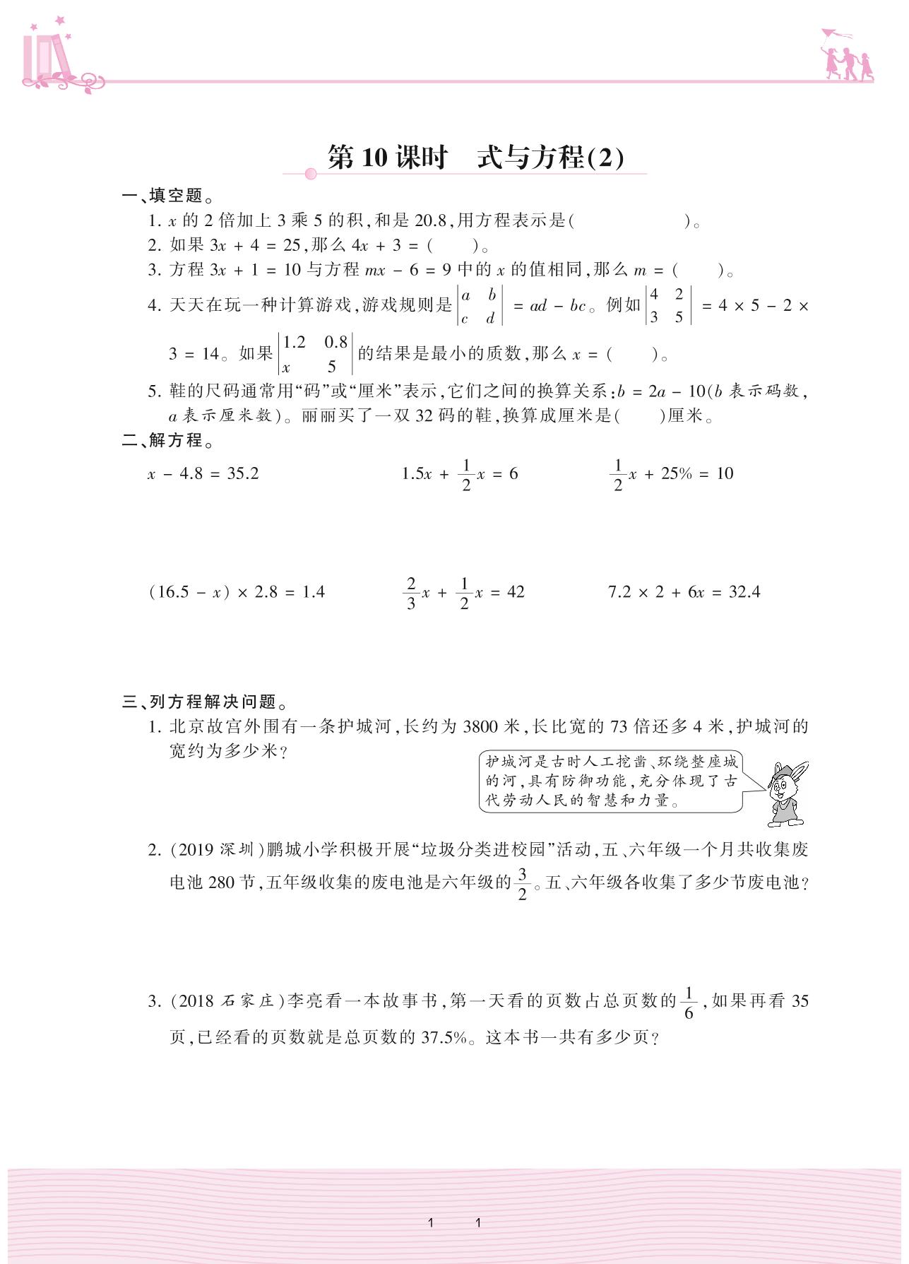 2021下册六年级数学冀教版 六 回顾与整理 (一)数与代数——第10课时 式与方程(2)