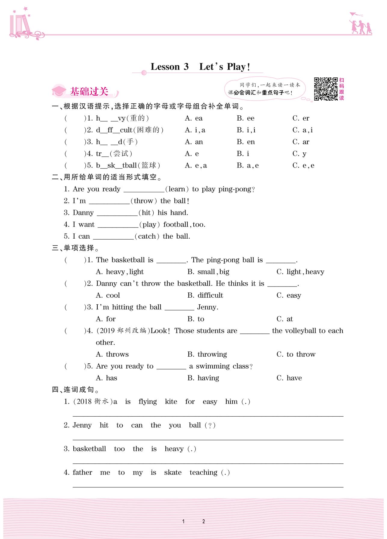 2021下册六年级英语冀教版 Unit 1—Lesson 3 Let’s Play!