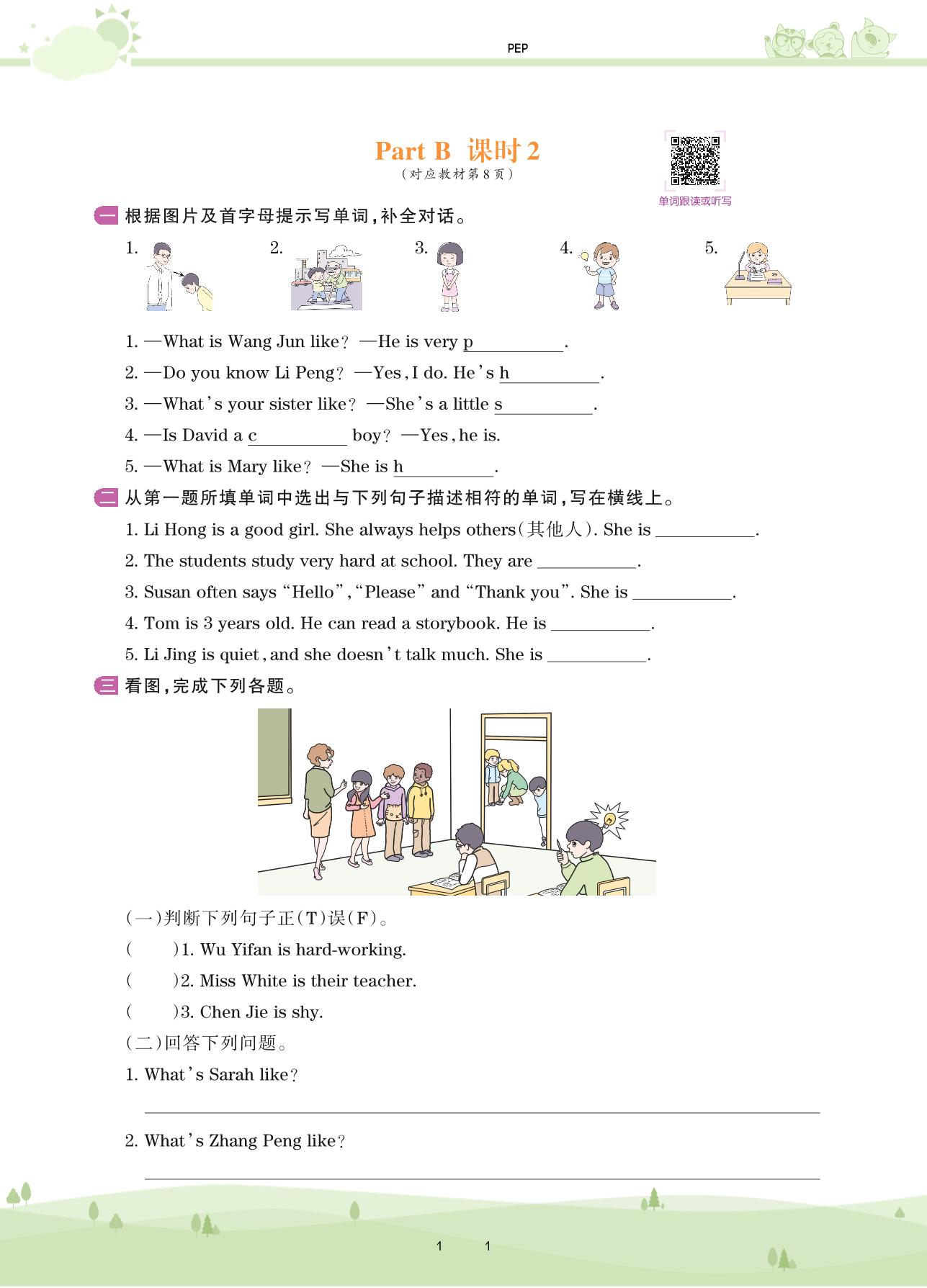 2020上册五年级英语PEP版 Unit 1 What’s he like?——Part B 课时2