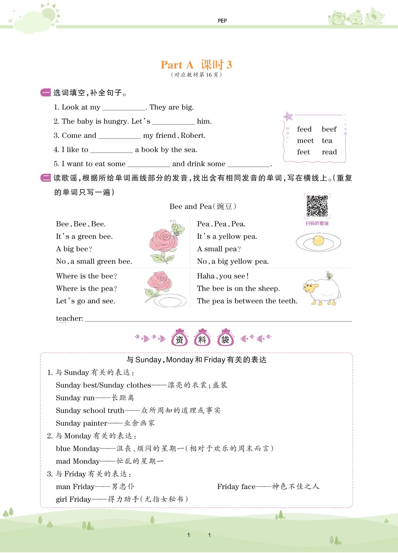2020上册五年级英语PEP版 Unit 2 My week——Part A 课时3